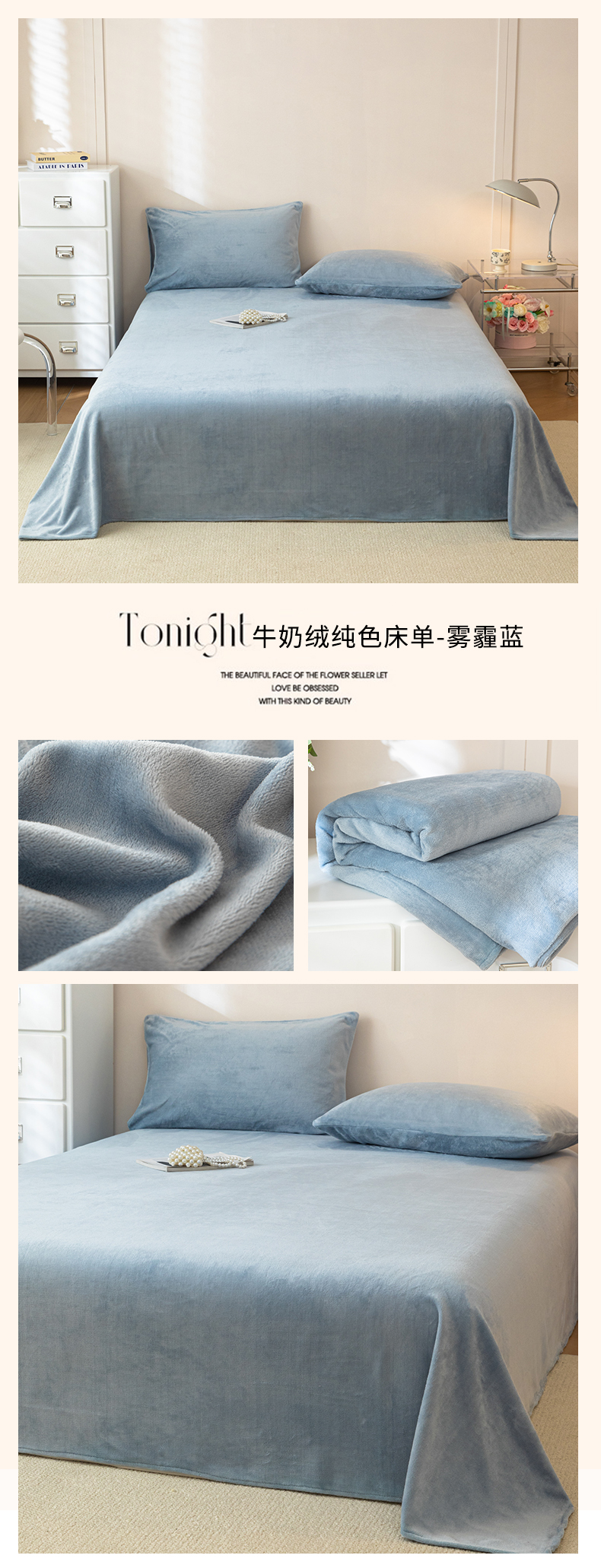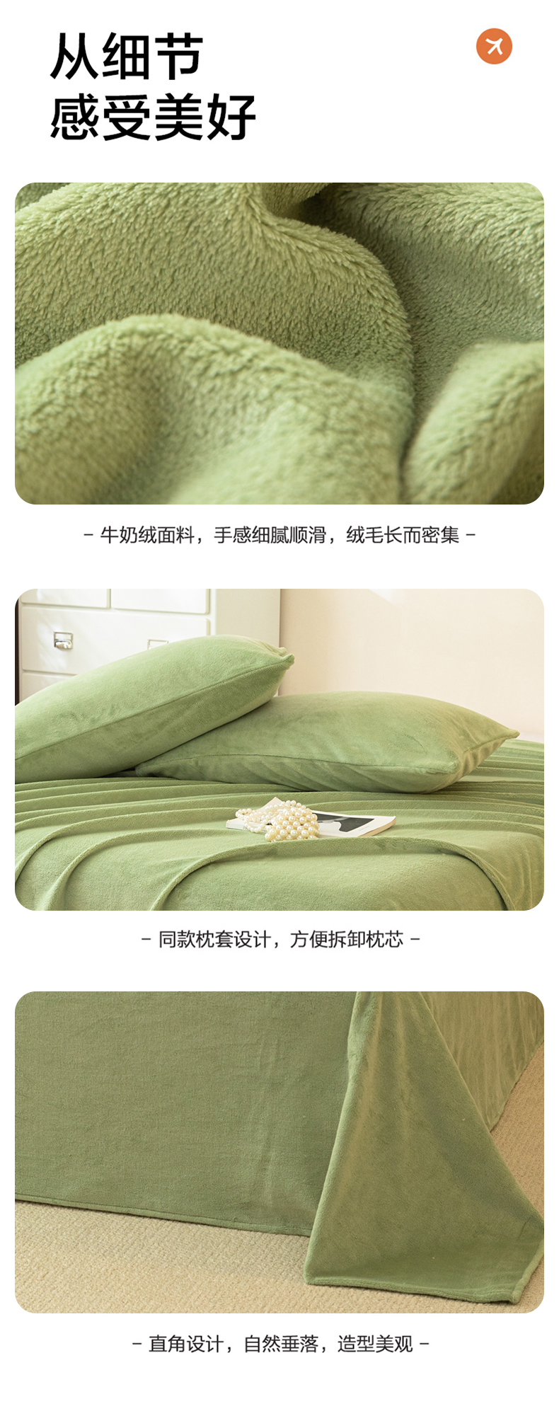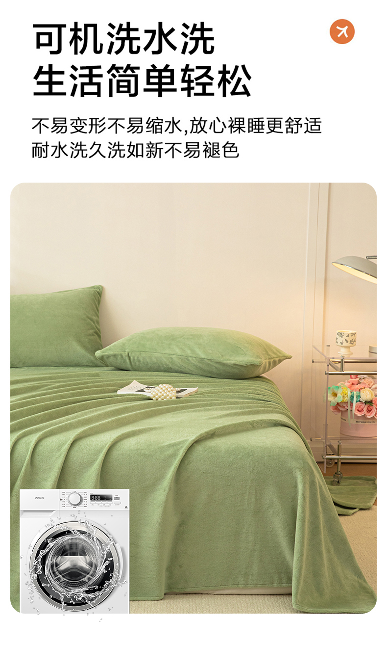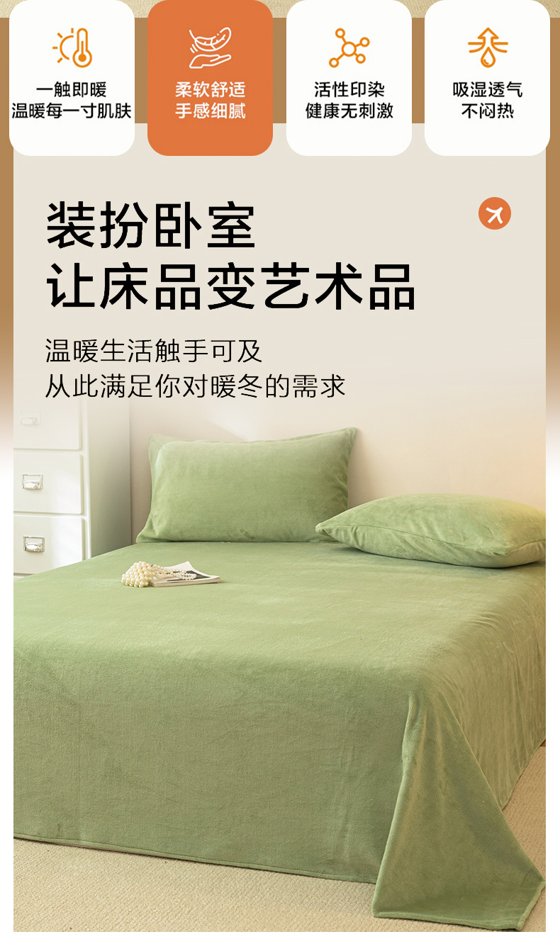 • 91家纺网 家纺一手货源 找家纺 眠博士 2025新款简约牛奶绒纯色单床单-场景二 牛奶绒纯色床单-苹果绿
