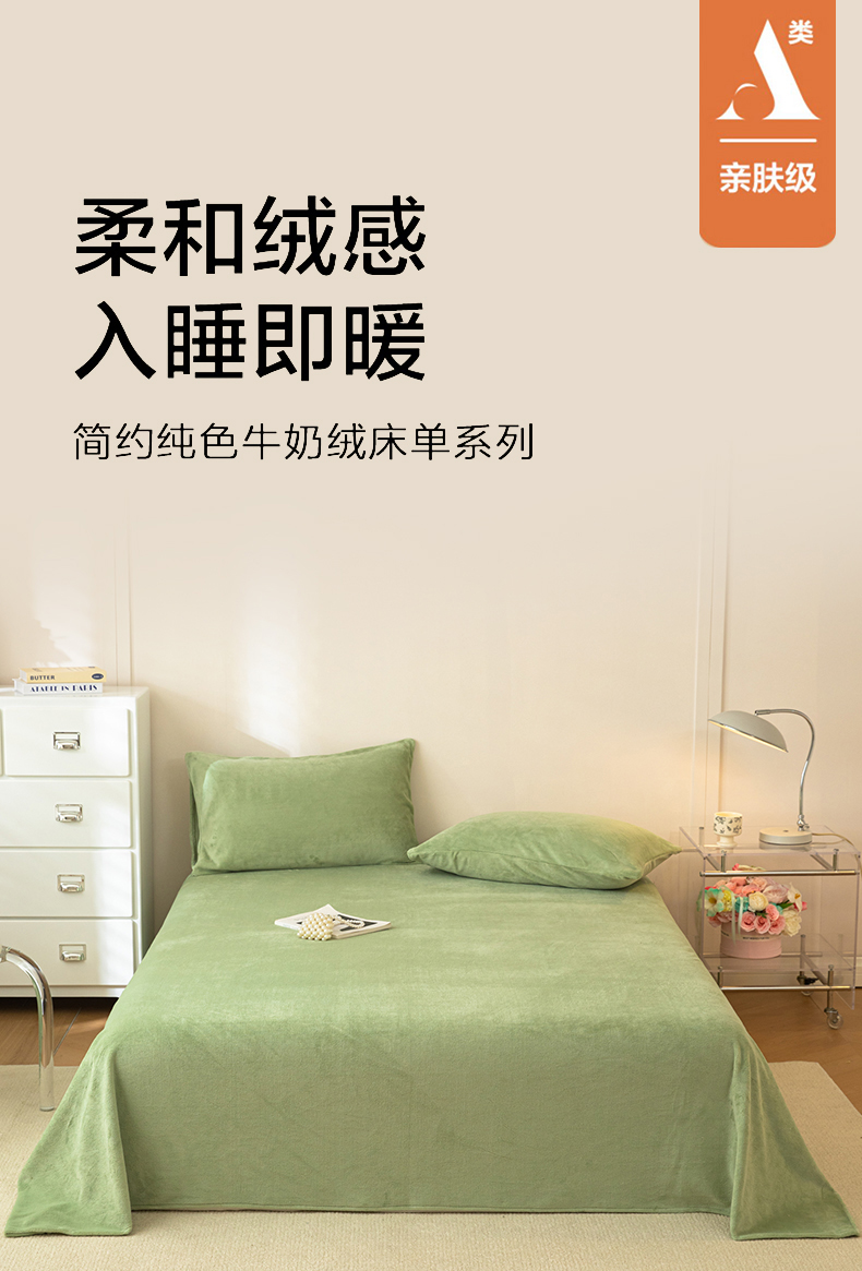 眠博士 2025新款简约牛奶绒纯色单床单-场景二 牛奶绒纯色床单-苹果绿