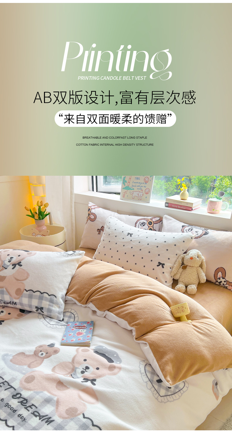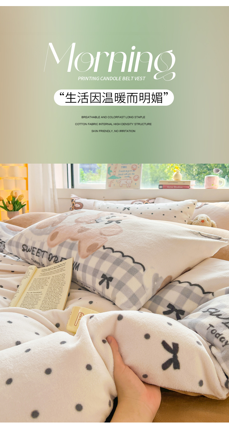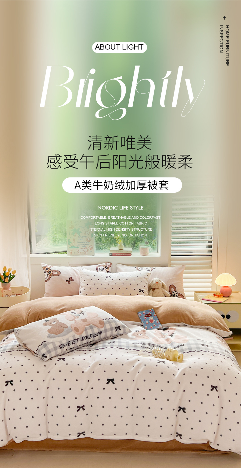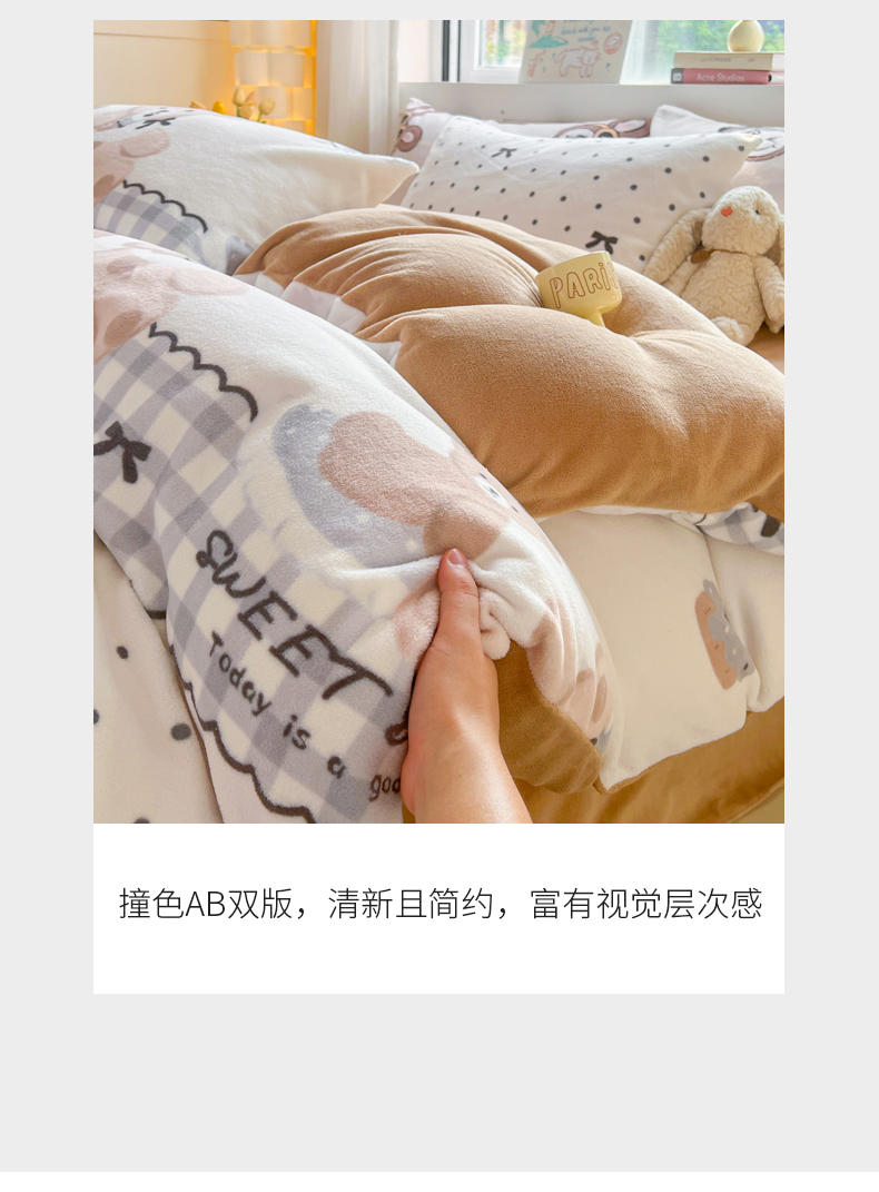 商品名称:LIFE.丽芙 2025秋冬新款A类牛奶绒加厚保暖单被套 安心熊仔