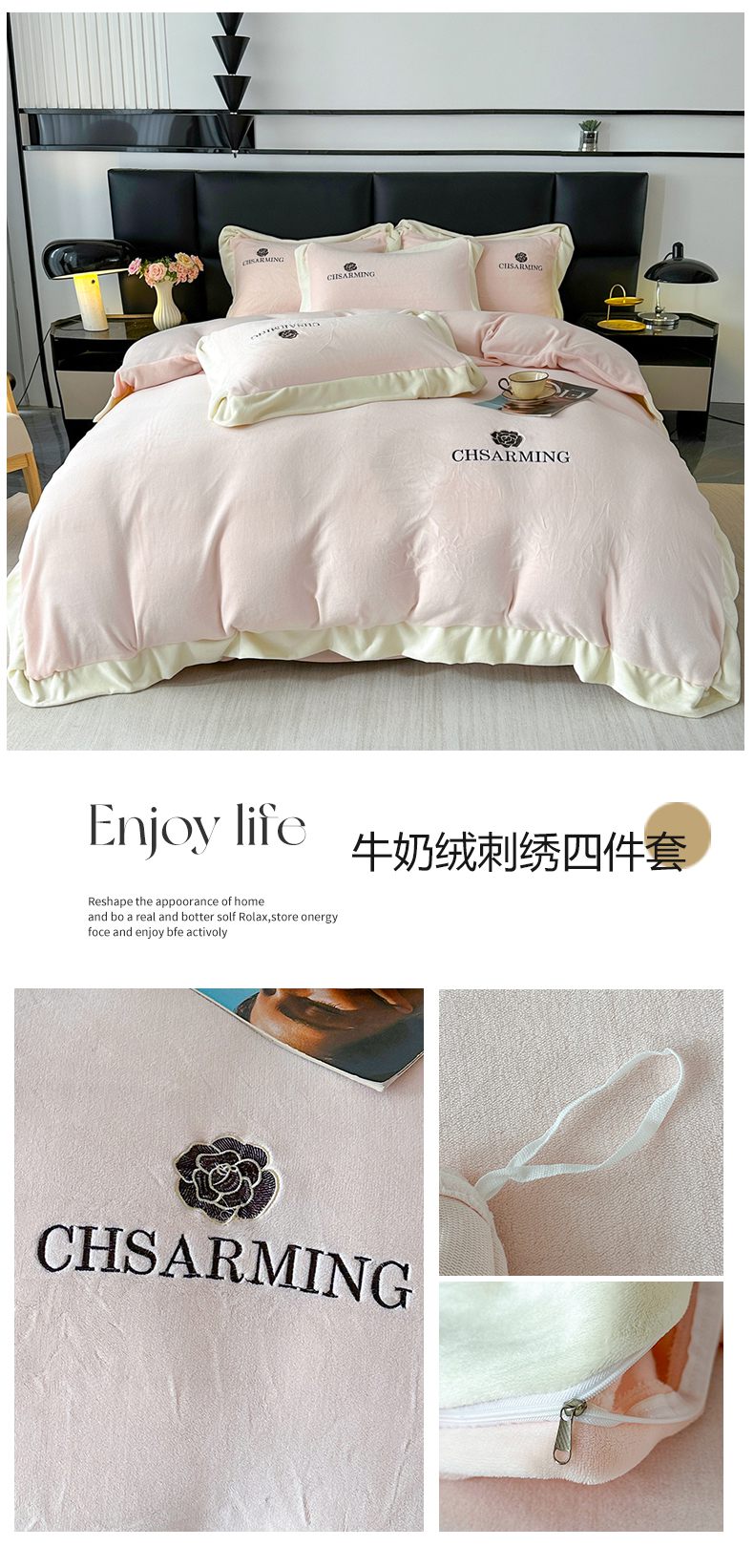 (总)畅畅家纺 2025秋冬新款高克重260克9斤半轻奢宽边芙缇绒牛奶绒四件套,芙缇绒-白,芙缇绒-豆沙,芙缇绒-粉,芙缇绒-灰,芙缇绒-橘,芙缇绒-咖,芙缇绒-蓝,芙缇绒-绿,芙缇绒-紫