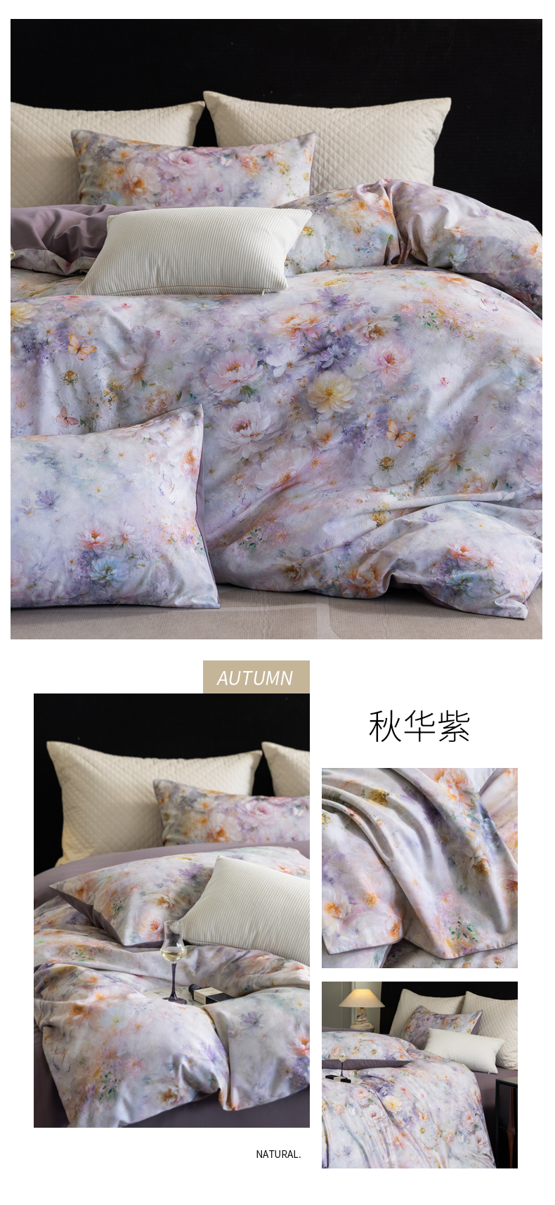 商品名称:立奥被业 2025新款全棉高密磨毛数码印花四件套(控价199)秋华紫