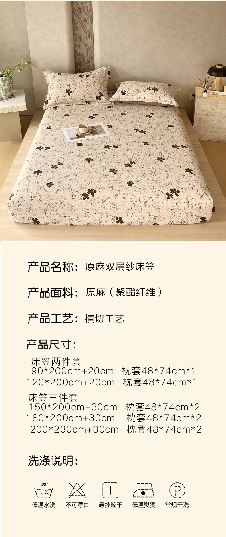 梵克保罗 2025秋冬新款10A抗菌原麻床笠套件跨境外贸 墨染芳华