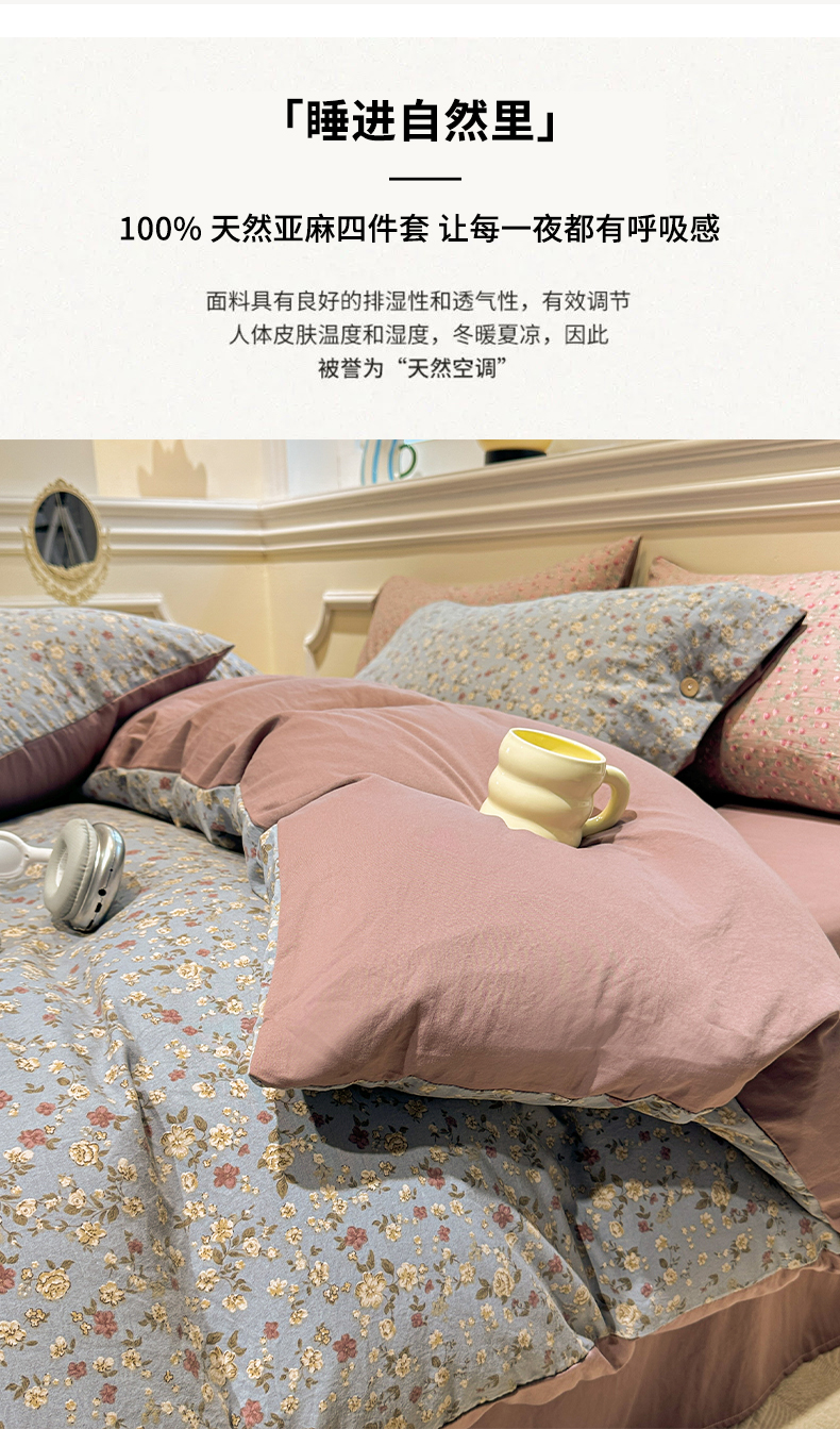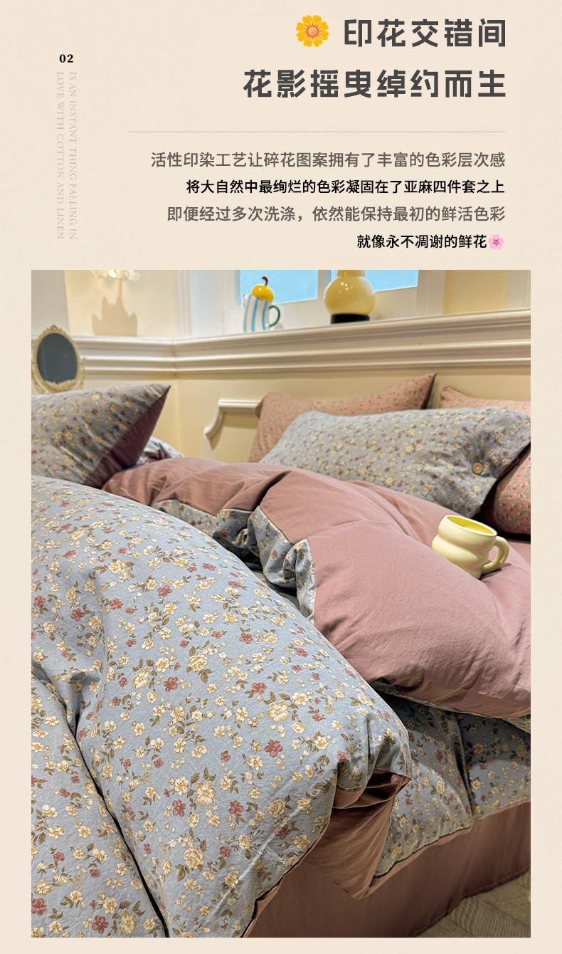 当前位置: 91家纺网 > 商品网购 > 床品套件 > 四件套 > 其它四件套 > (总)爱彼家纺 2025新款中古风亚麻水洗棉四件套-玫瑰系列-纽扣款