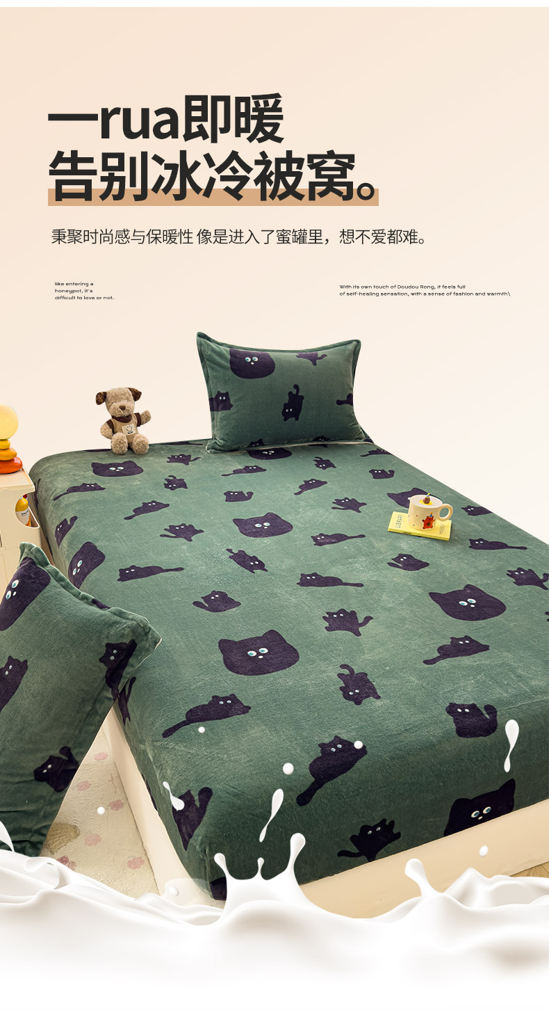 (总)久云居 2025新款高克重牛奶绒床笠,绵阳牧场,波点黑猫,大象乐园,卡多啦,萌犬派对,墨绿喵星,小熊星梦,雅致田园