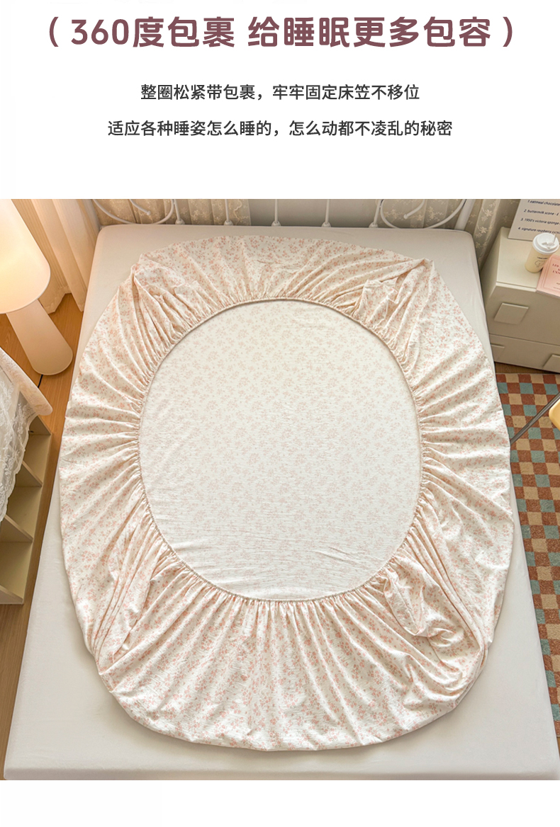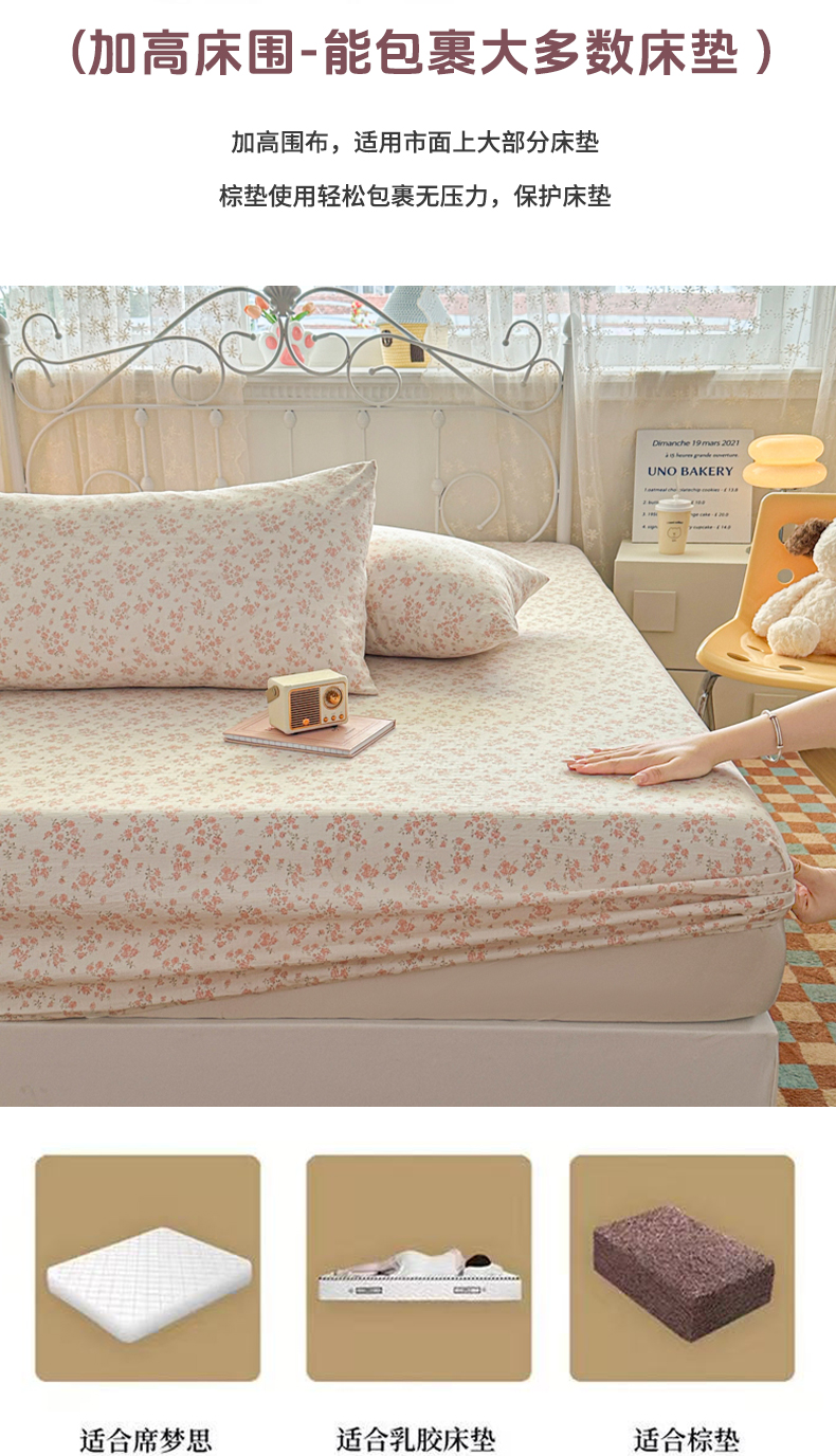 • 91家纺网 家纺一手货源 找家纺 爱彼家纺 2025新款水洗水洗棉印花床笠单品床笠床笠三件套风格二 浅粉碎花