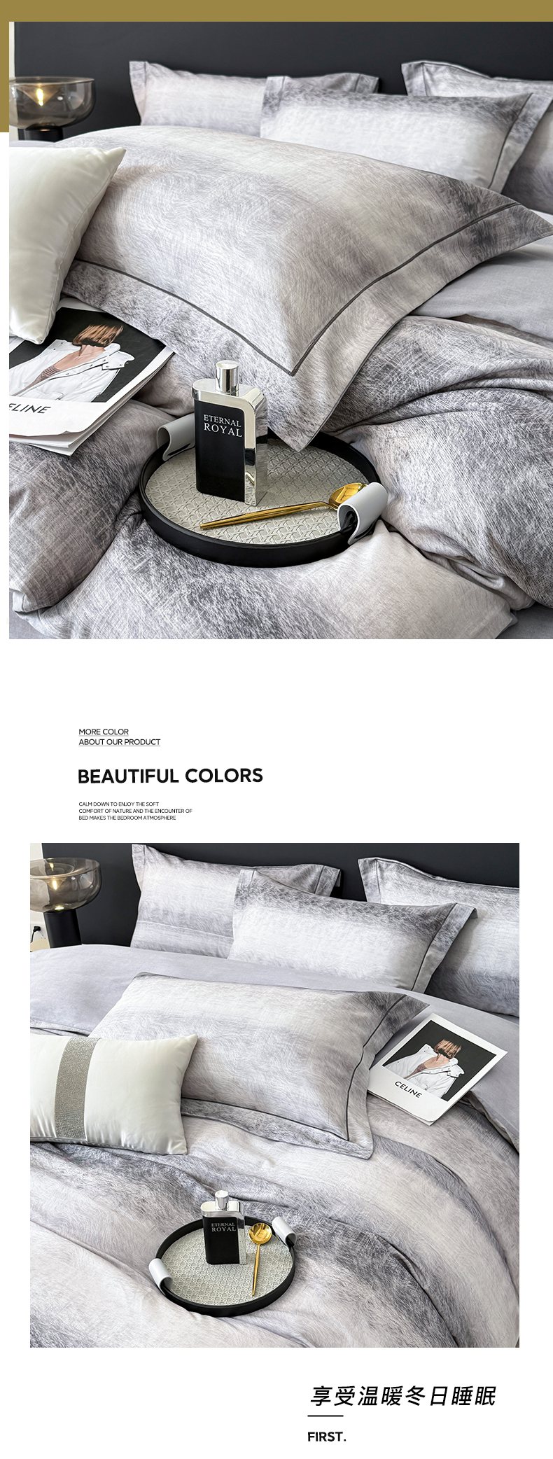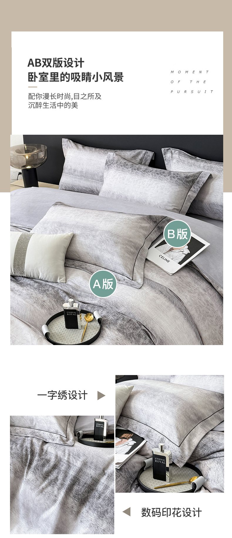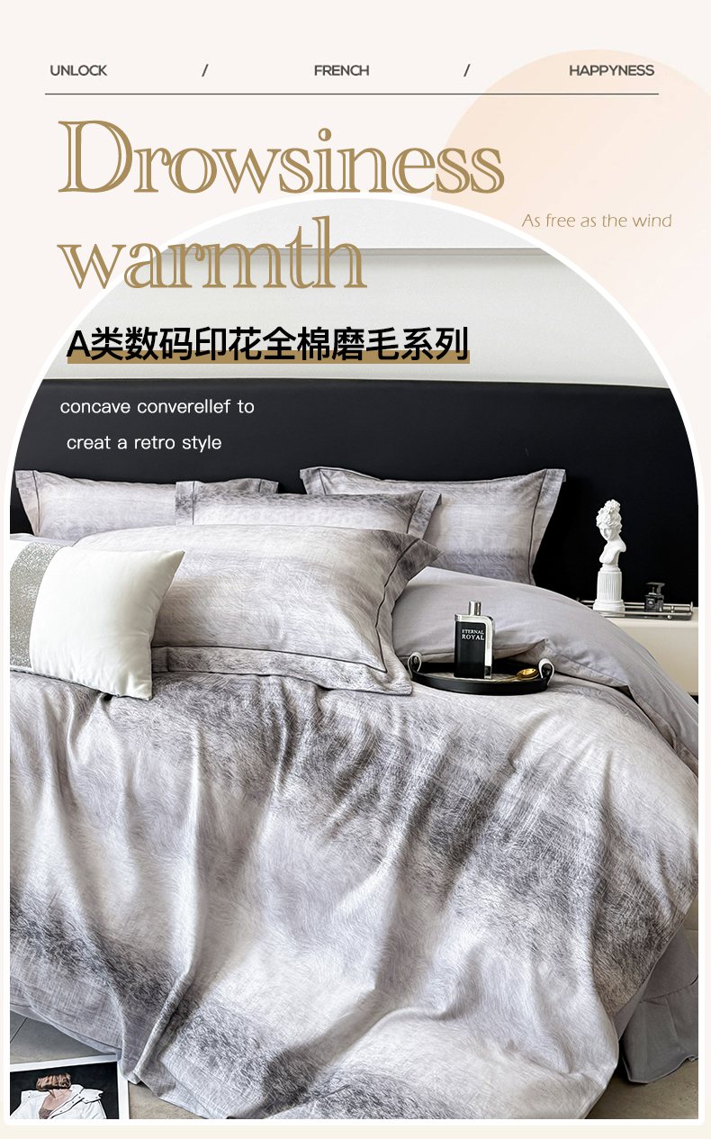 当前位置: 91家纺网 > 商品网购 > 床品套件 > 四件套 > 普通磨毛四件套 > 梵克保罗 2025秋冬新款数码印花全棉磨毛单被套三件套四件套系列 苏菲庄园-灰
