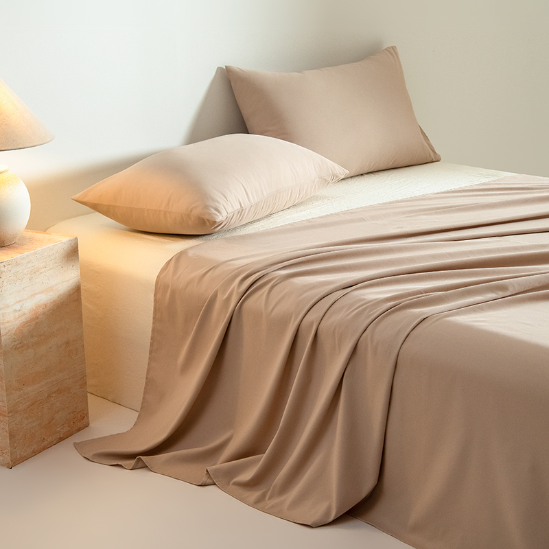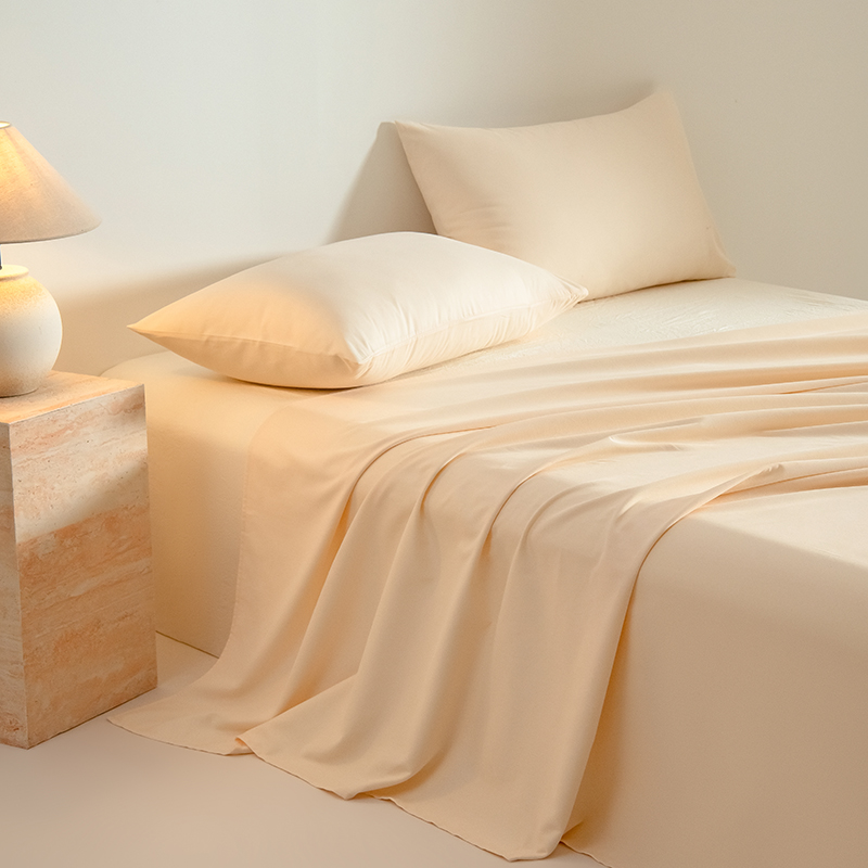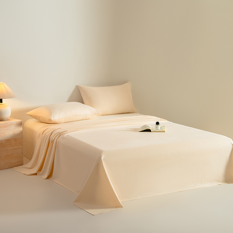 商品名称:Mr.pig猪先生水洗棉 2025新款A类50支双股全棉纯棉贡缎磨毛单床单 奶茶香槟