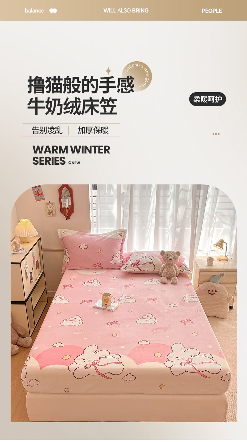 • 91家纺网 家纺一手货源 找家纺 寻米 2025新款高克重加厚保暖牛奶绒床笠-大床图 小狗茶园