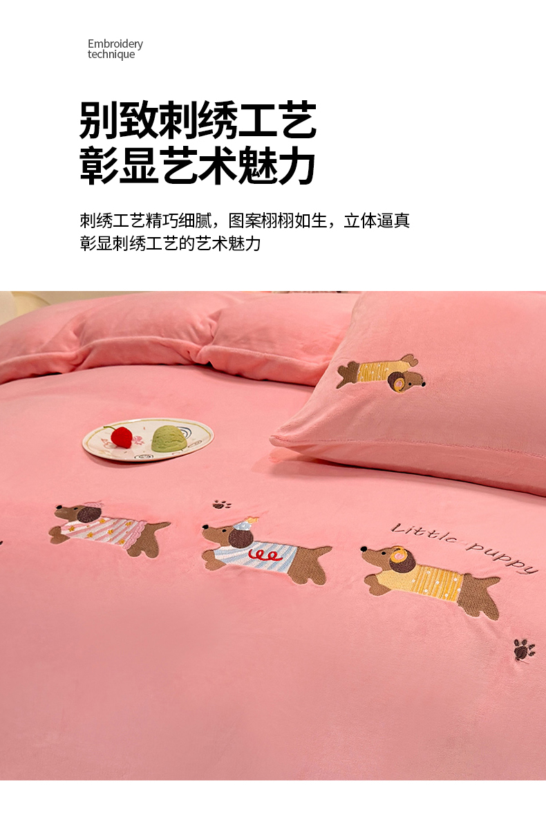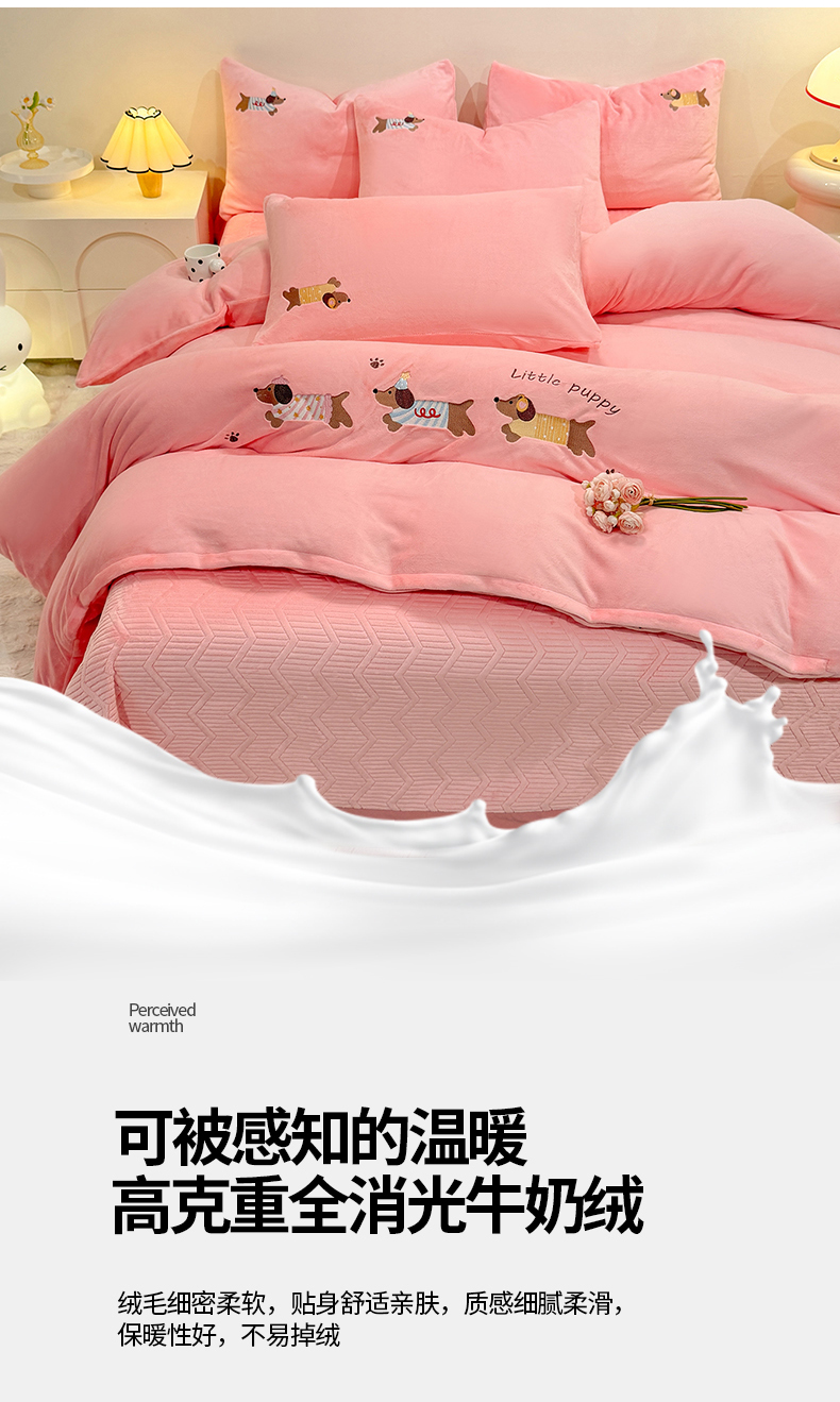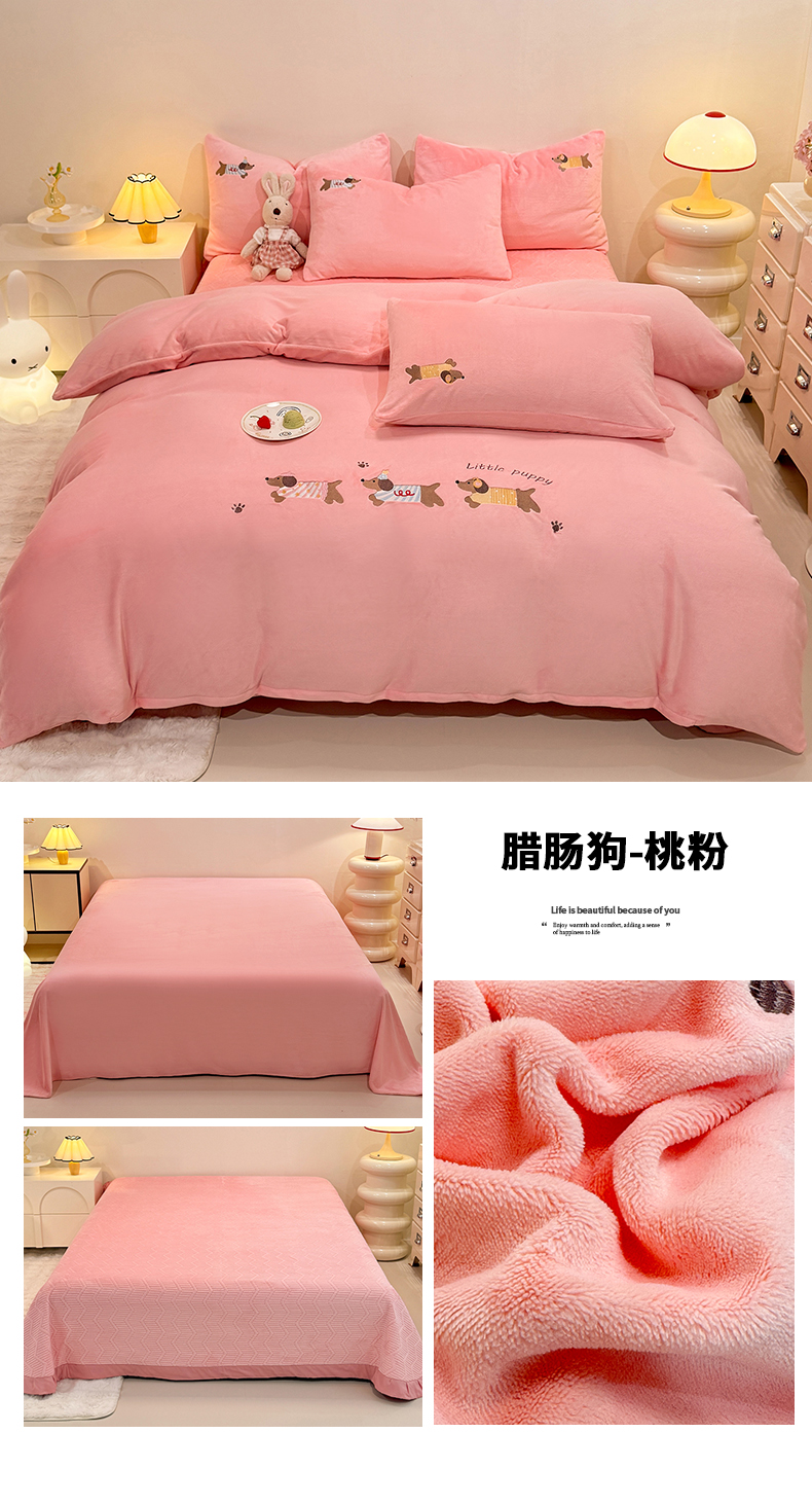 当前位置: 91家纺网 > 商品网购 > 床品套件 > 四件套 > 牛奶绒四件套 > 新方向 2025新款全消光A类刺绣牛奶绒四件套-腊肠狗 腊肠狗-桃粉