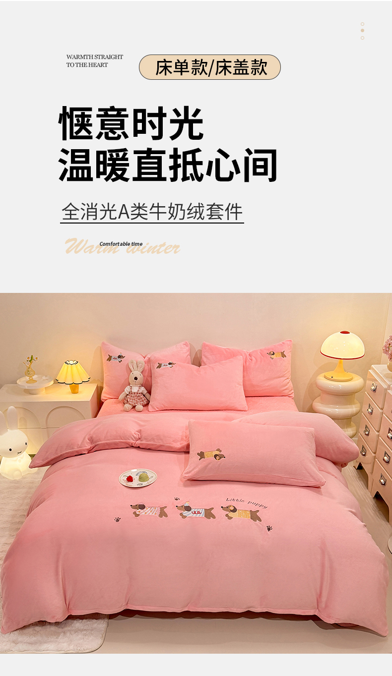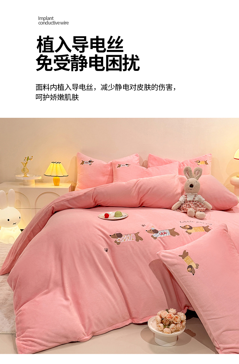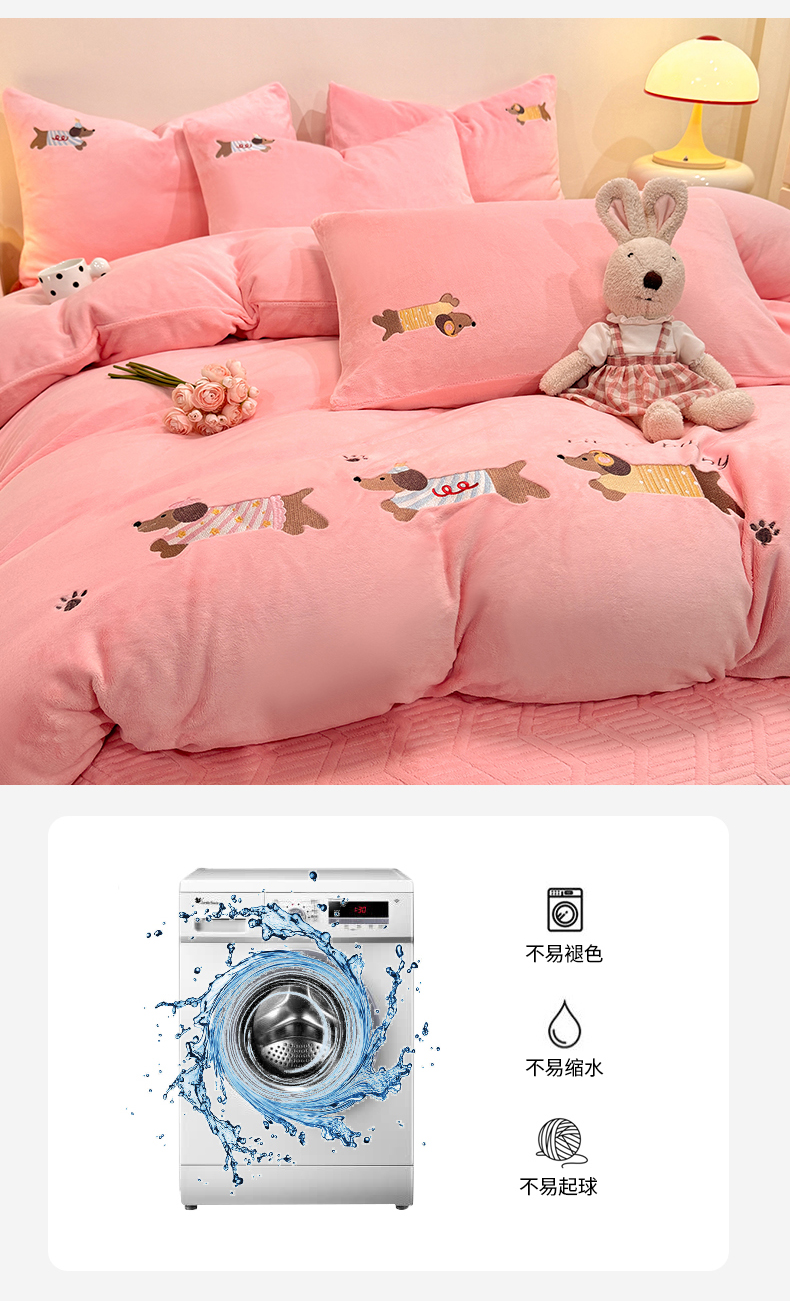 当前位置: 91家纺网 > 商品网购 > 床品套件 > 四件套 > 牛奶绒四件套 > 新方向 2025新款全消光A类刺绣牛奶绒四件套-腊肠狗 腊肠狗-桃粉
