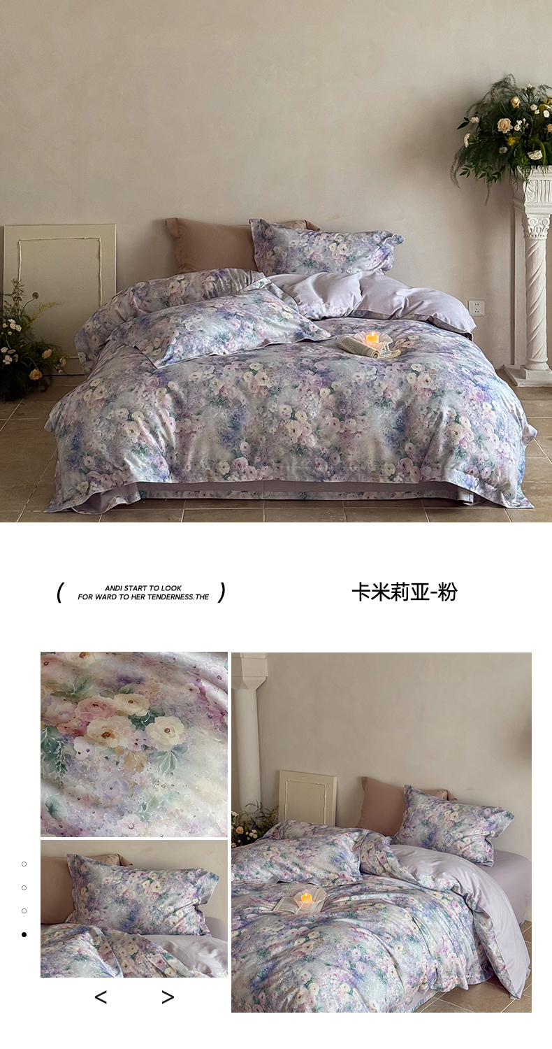 商品名称:禾时 2025新款天丝棉磨毛数码印花四件套 卡米莉亚-紫