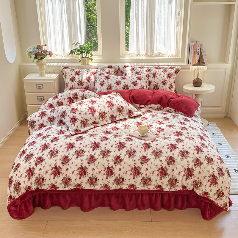 商品名称:欧尚 2025新款高克重牛奶绒加厚保暖印花床盖四件套 梨花落