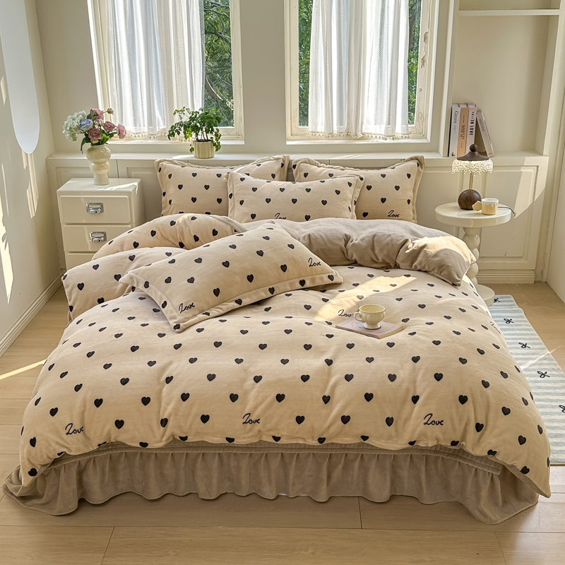 (总)欧尚 2025新款牛奶绒花边床盖四件套,粉点点,花小玉,咖色小心心,蓝点点,慕然,仙女粉,仙女紫