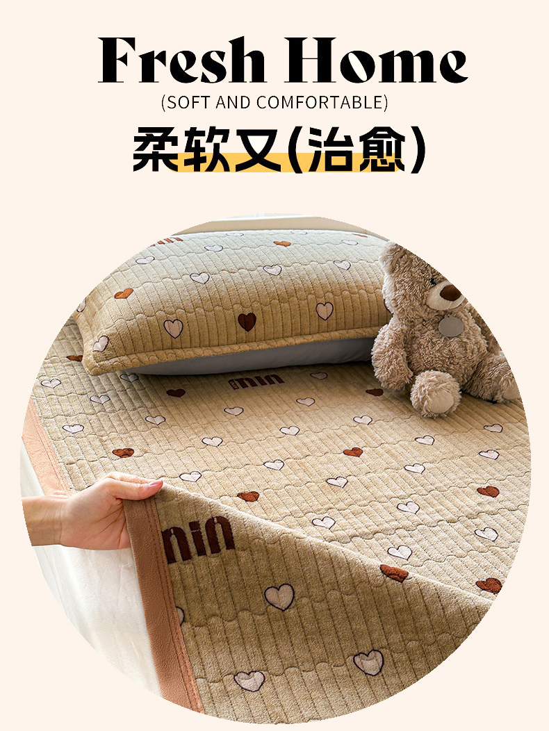 丫丫家纺 2025新款牛奶绒床盖 爱心缪缪