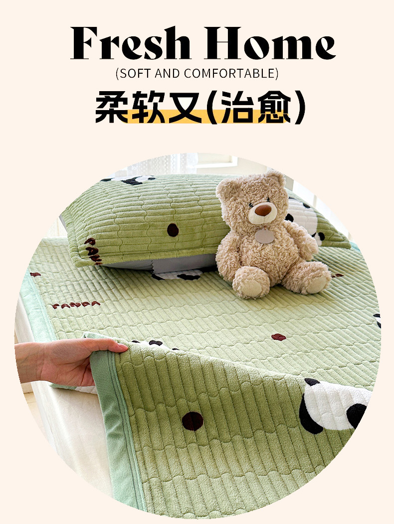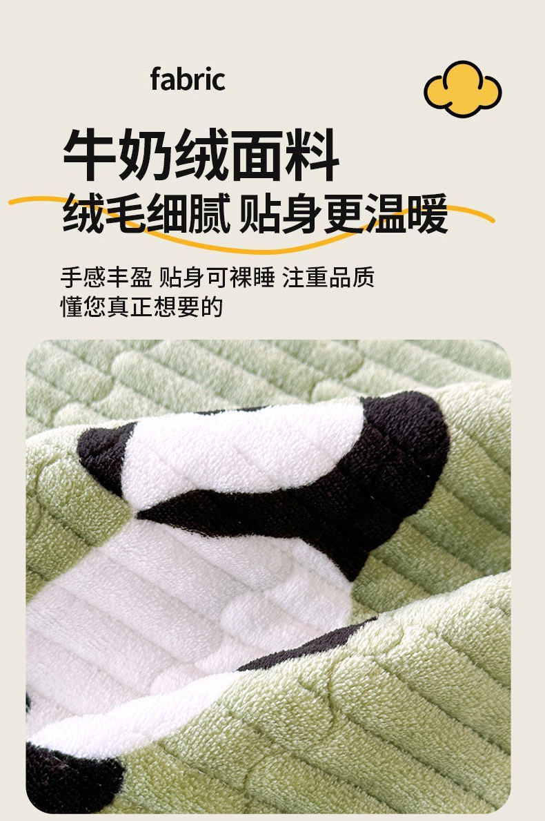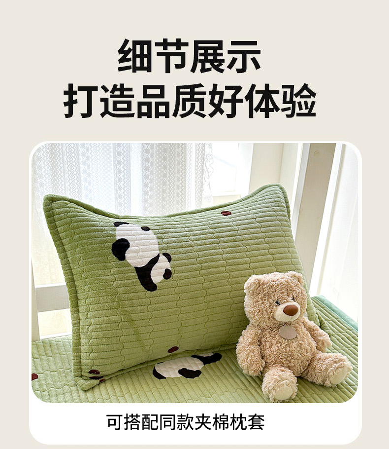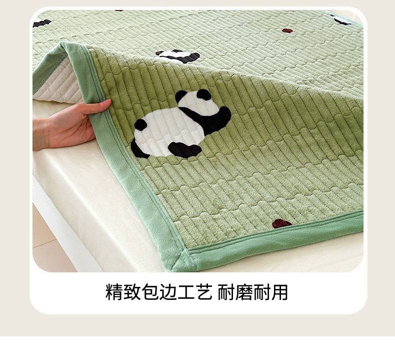 商品名称:丫丫家纺 2025新款牛奶绒床盖 熊猫绿