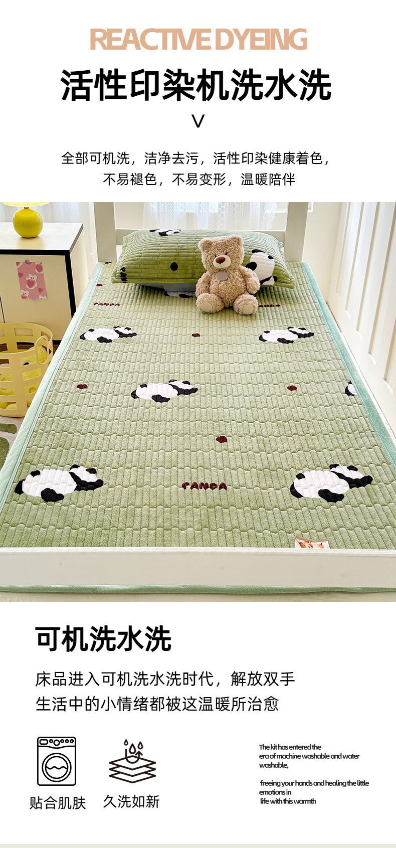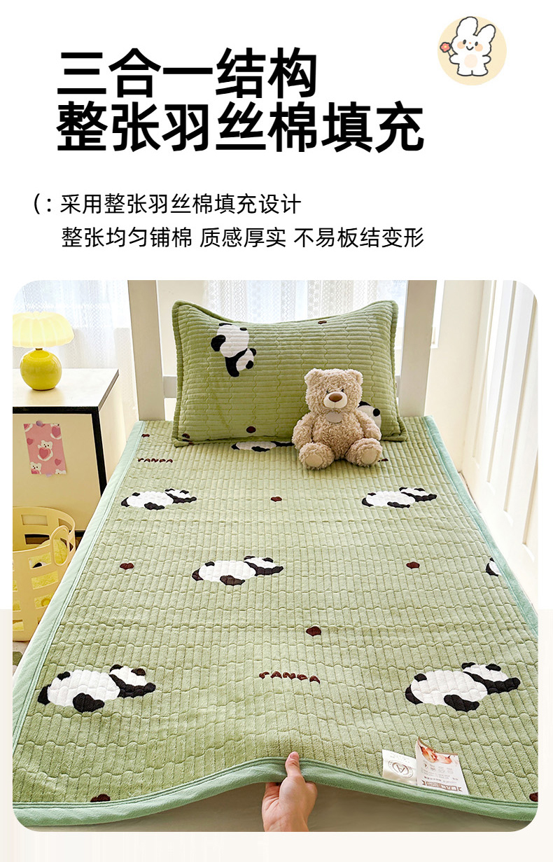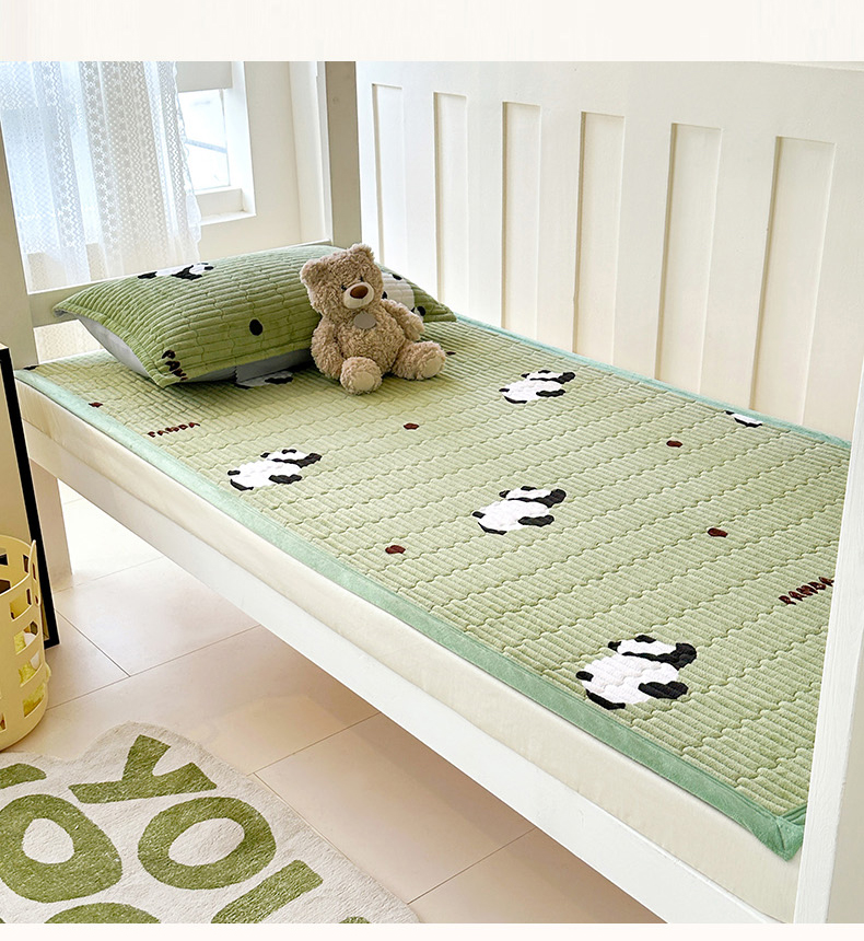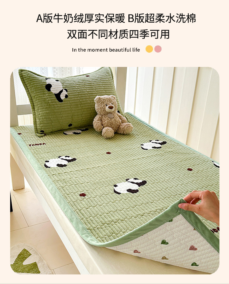 商品名称:丫丫家纺 2025新款牛奶绒床盖 熊猫绿