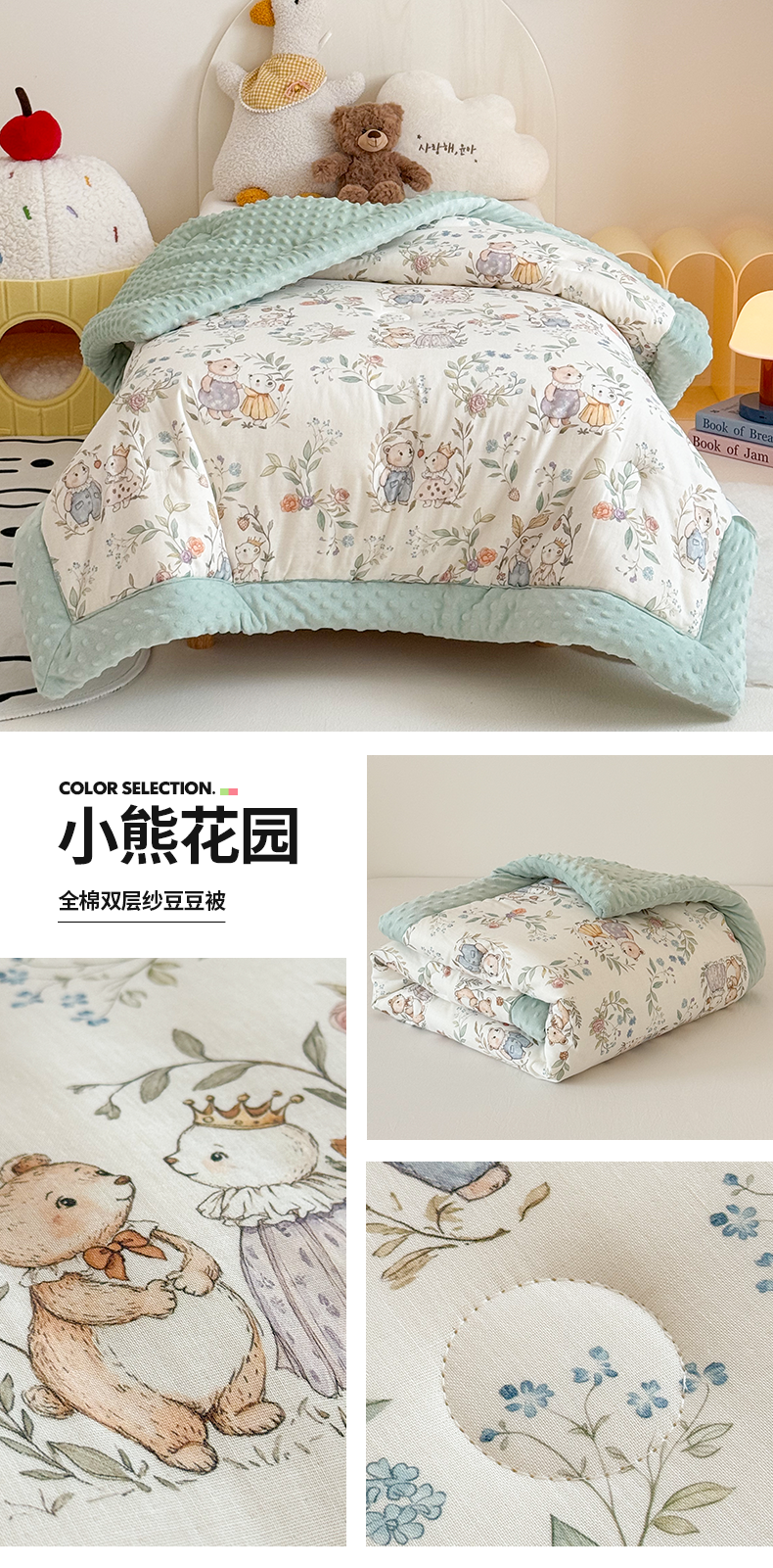 商品名称:嗨生活 2025新款森林系原创儿童全棉双层纱春秋被冬被幼儿园被子 小熊花园