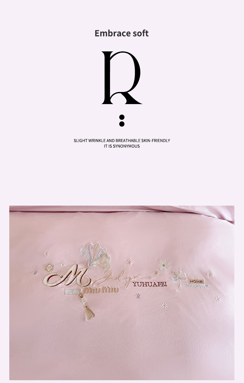 商品名称:文黛家居 2025新款高克重水洗棉绣花四件套-梦恋 梦恋-粉