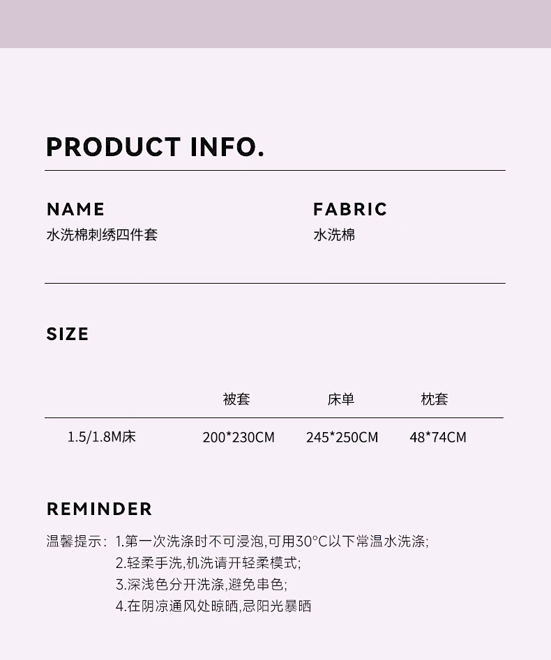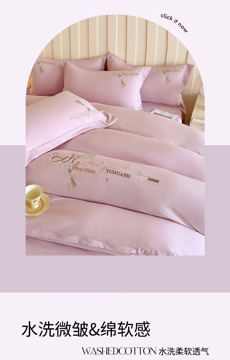 (总)文黛家居 2025新款高克重水洗棉绣花四件套-梦恋,梦恋-粉,梦恋-灰,梦恋-果绿,梦恋-浅蓝,梦恋-紫
