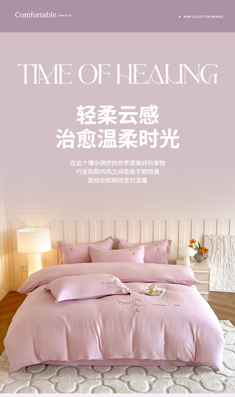 文黛家居 2025新款高克重水洗棉绣花四件套-梦恋 梦恋-粉