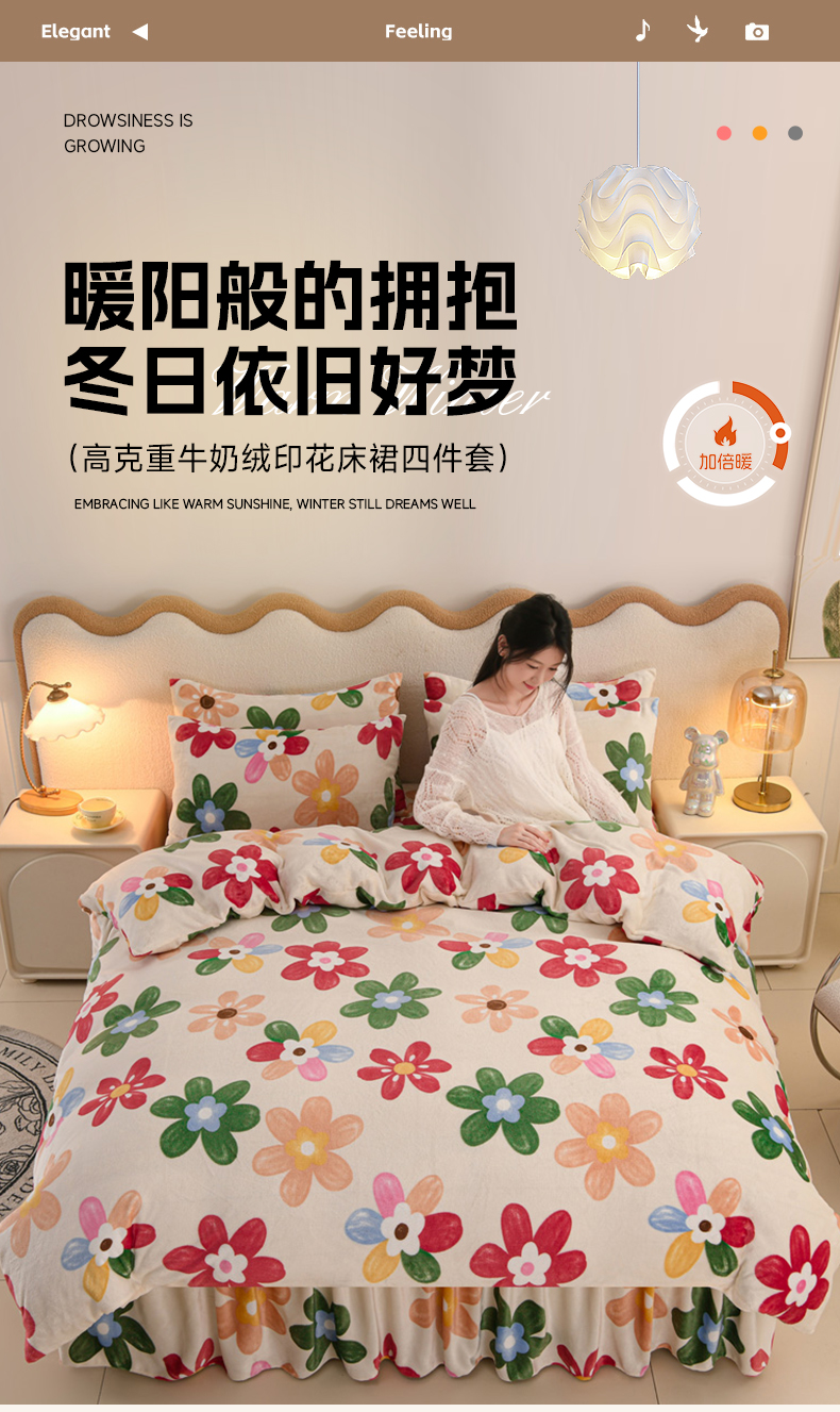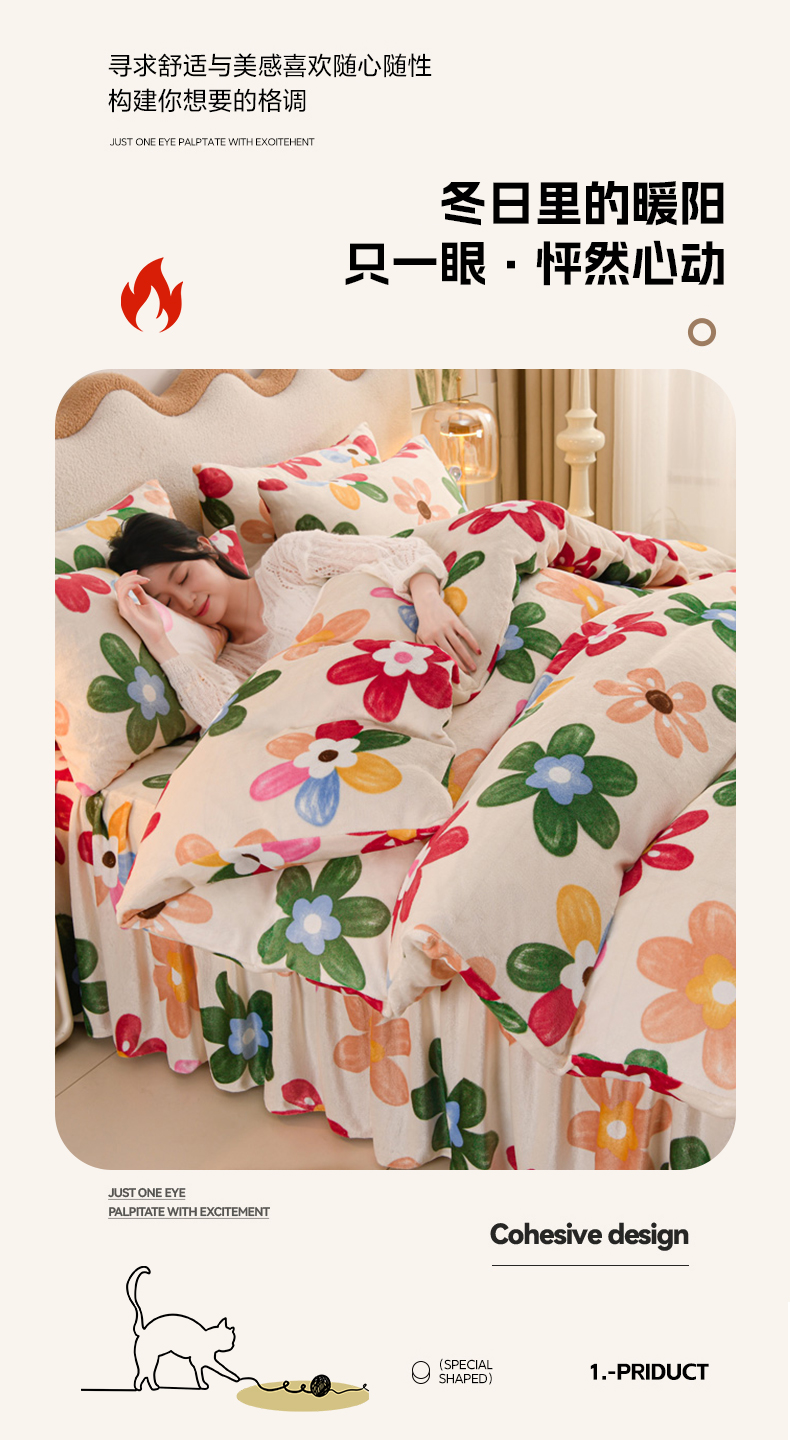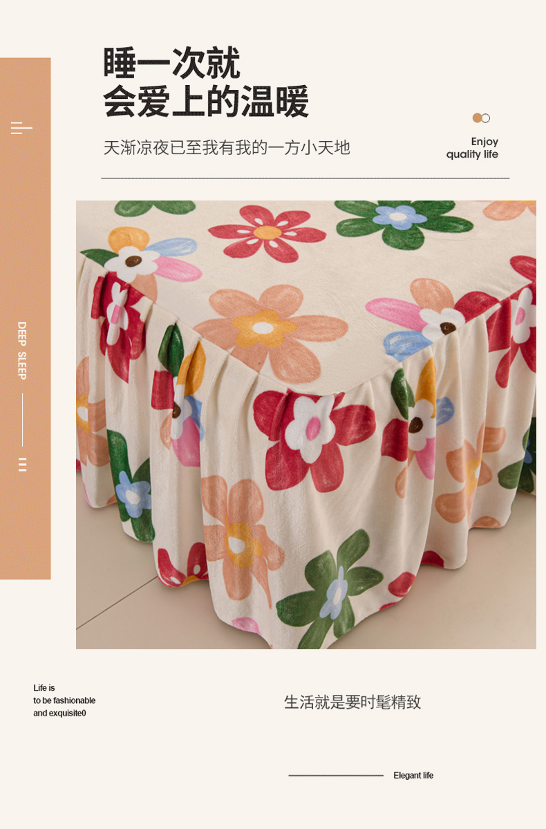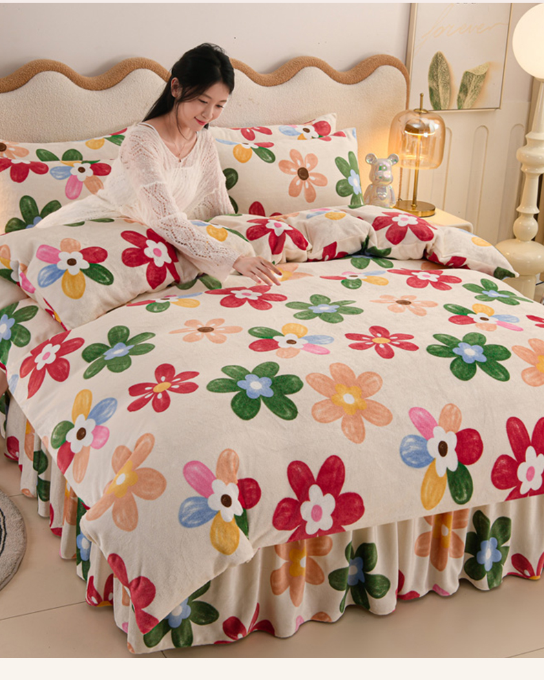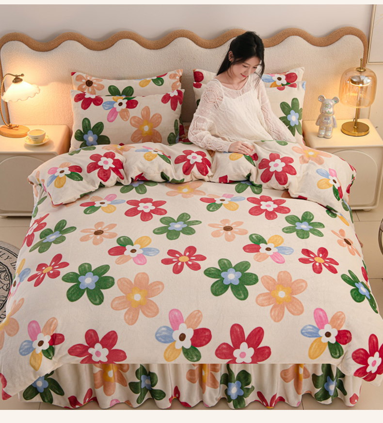 圣楚家纺 2025新款牛奶绒床裙款四件套 花花世界