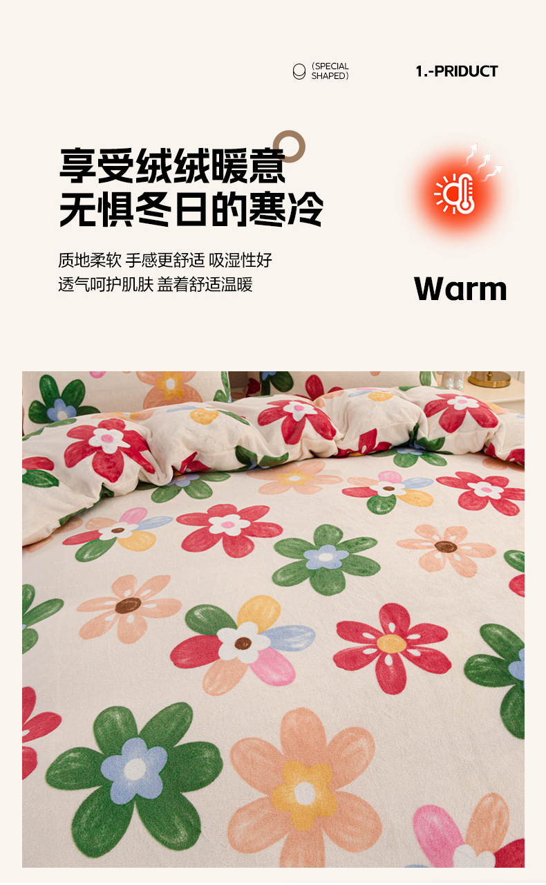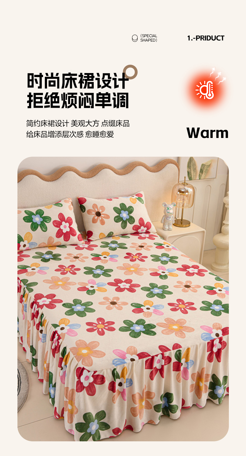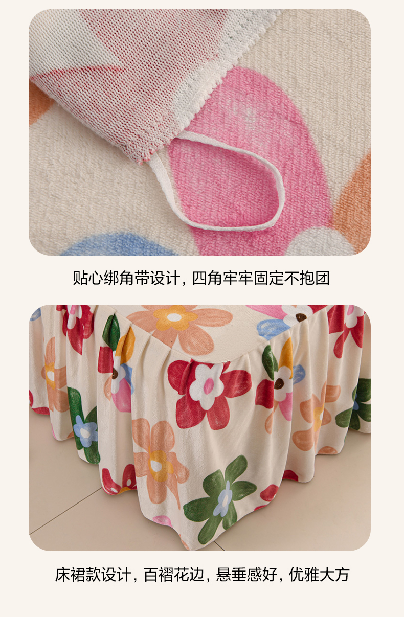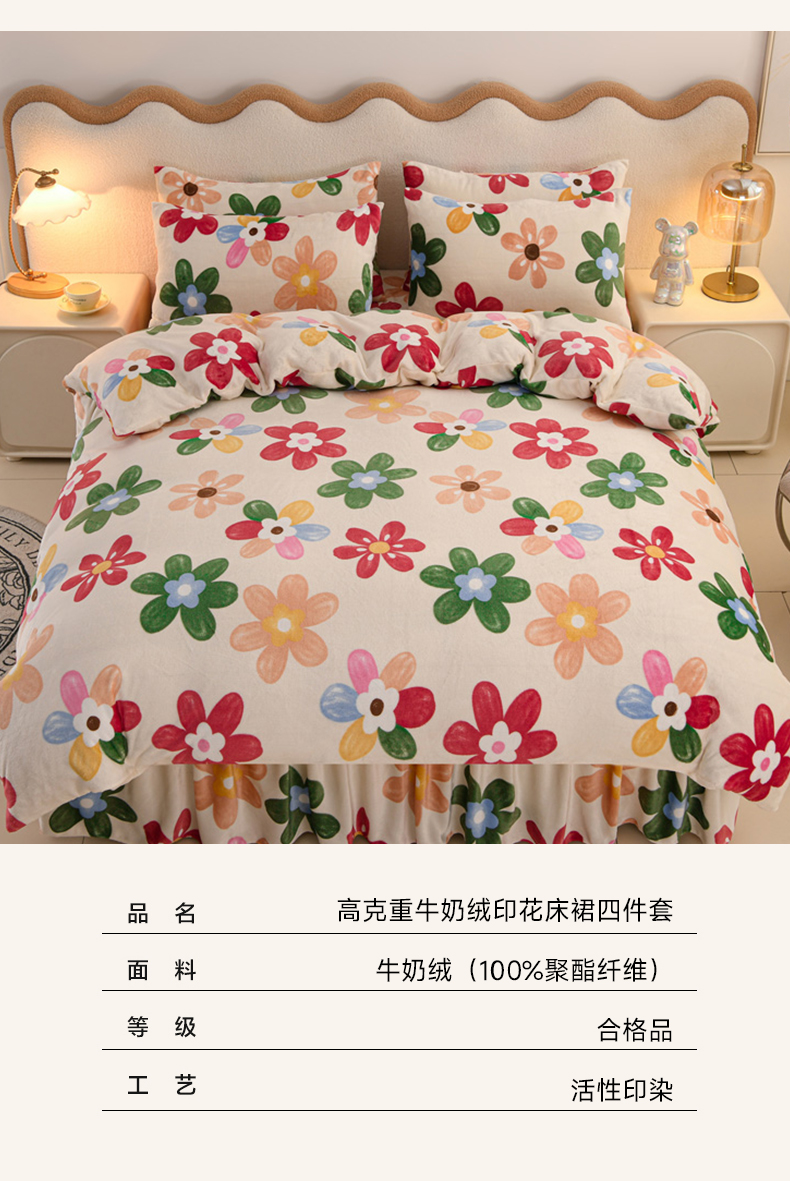 商品名称:圣楚家纺 2025新款牛奶绒床裙款四件套 花花世界