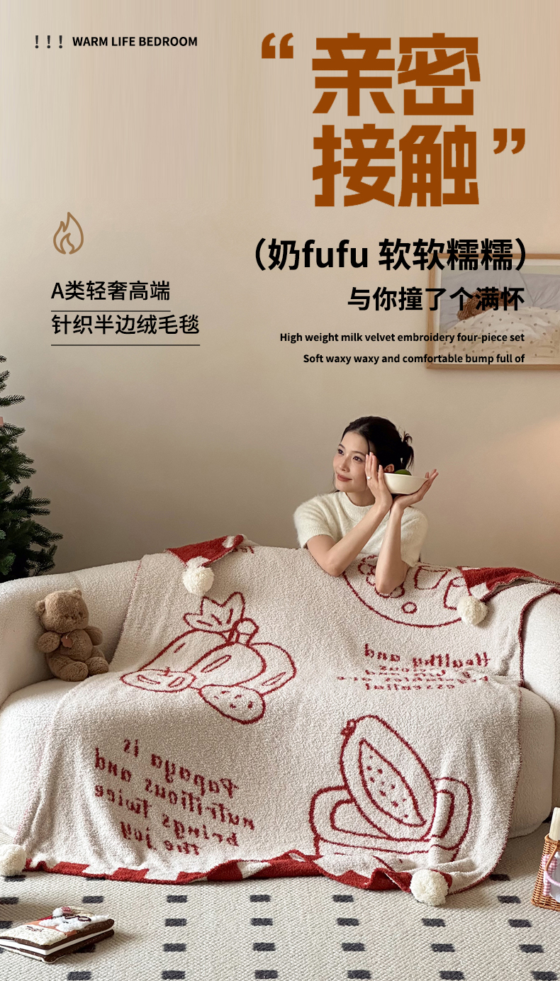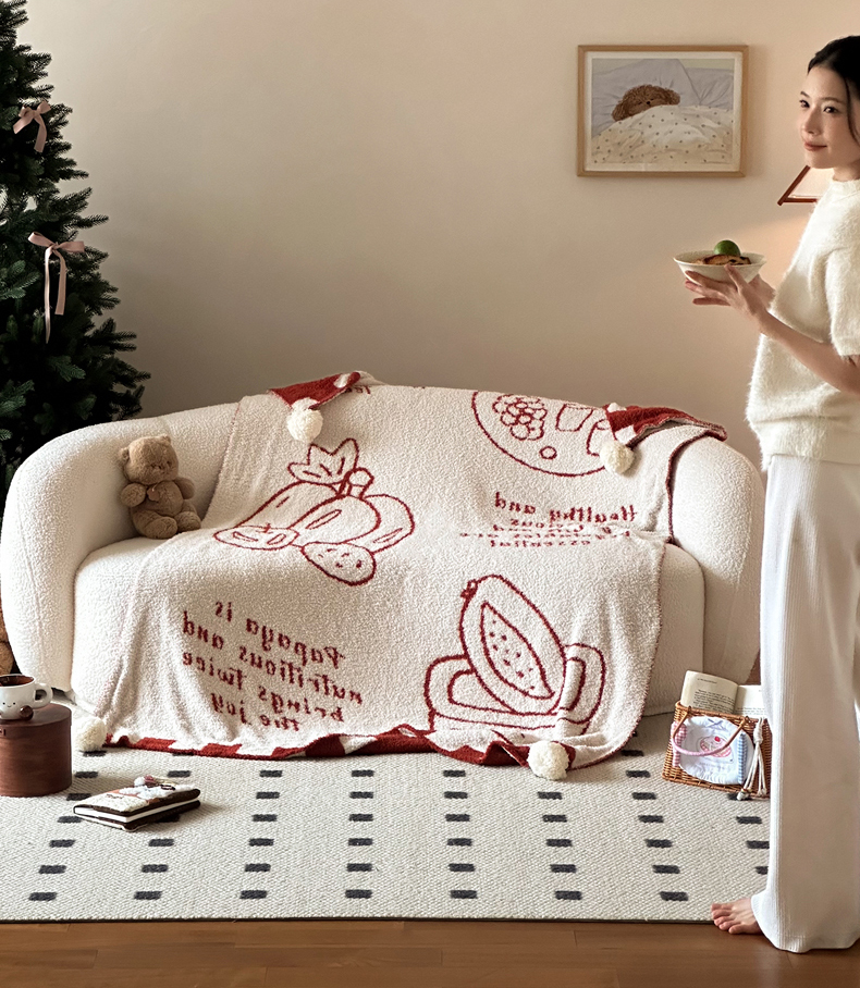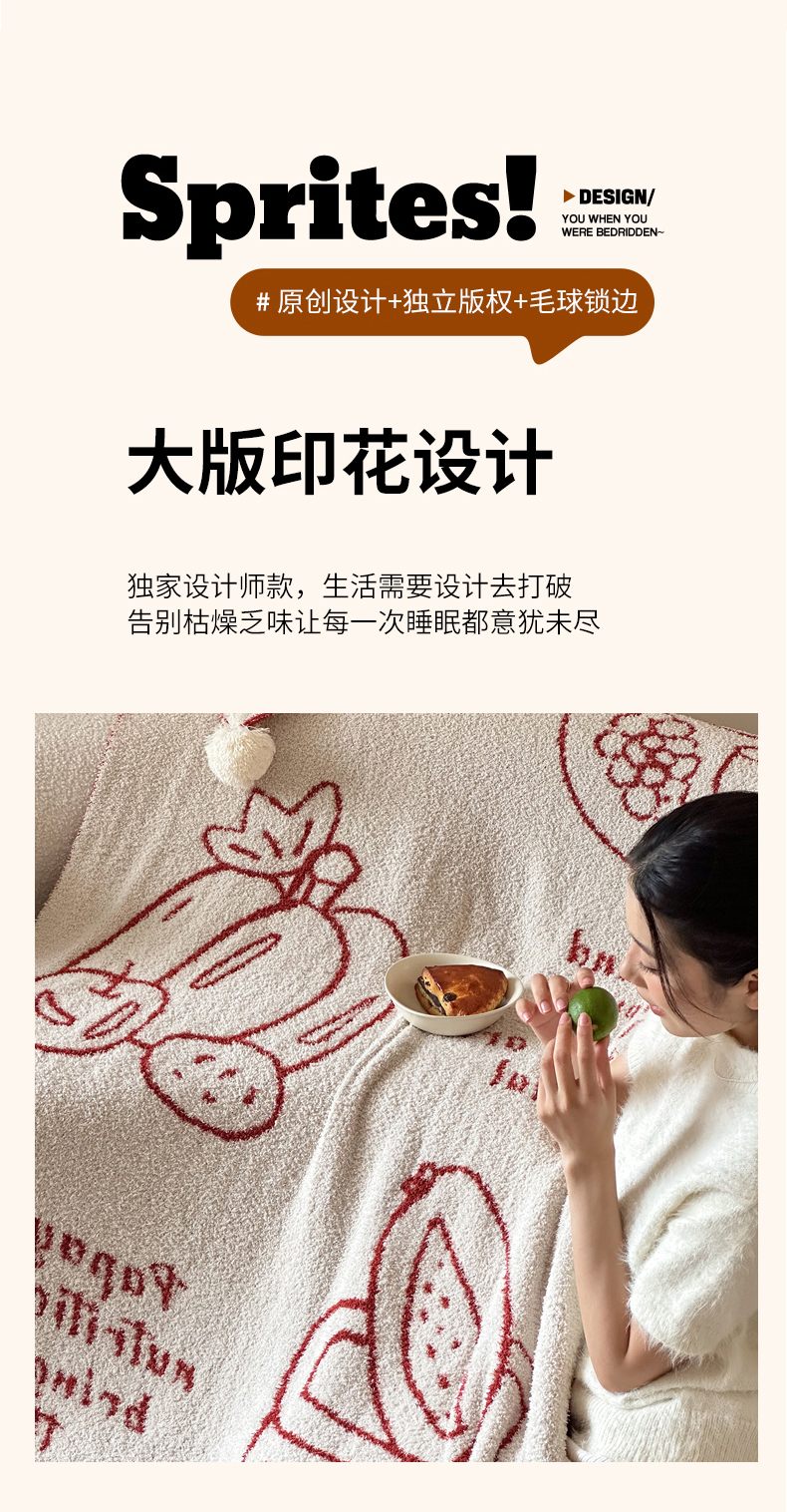 当前位置: 91家纺网 > 商品网购 > 毛毯休闲毯绒毯 > 毛毯 > Sweet dreams甜梦 2025新款轻奢高端毛球款半边绒针织毛毯 蔬果下午茶