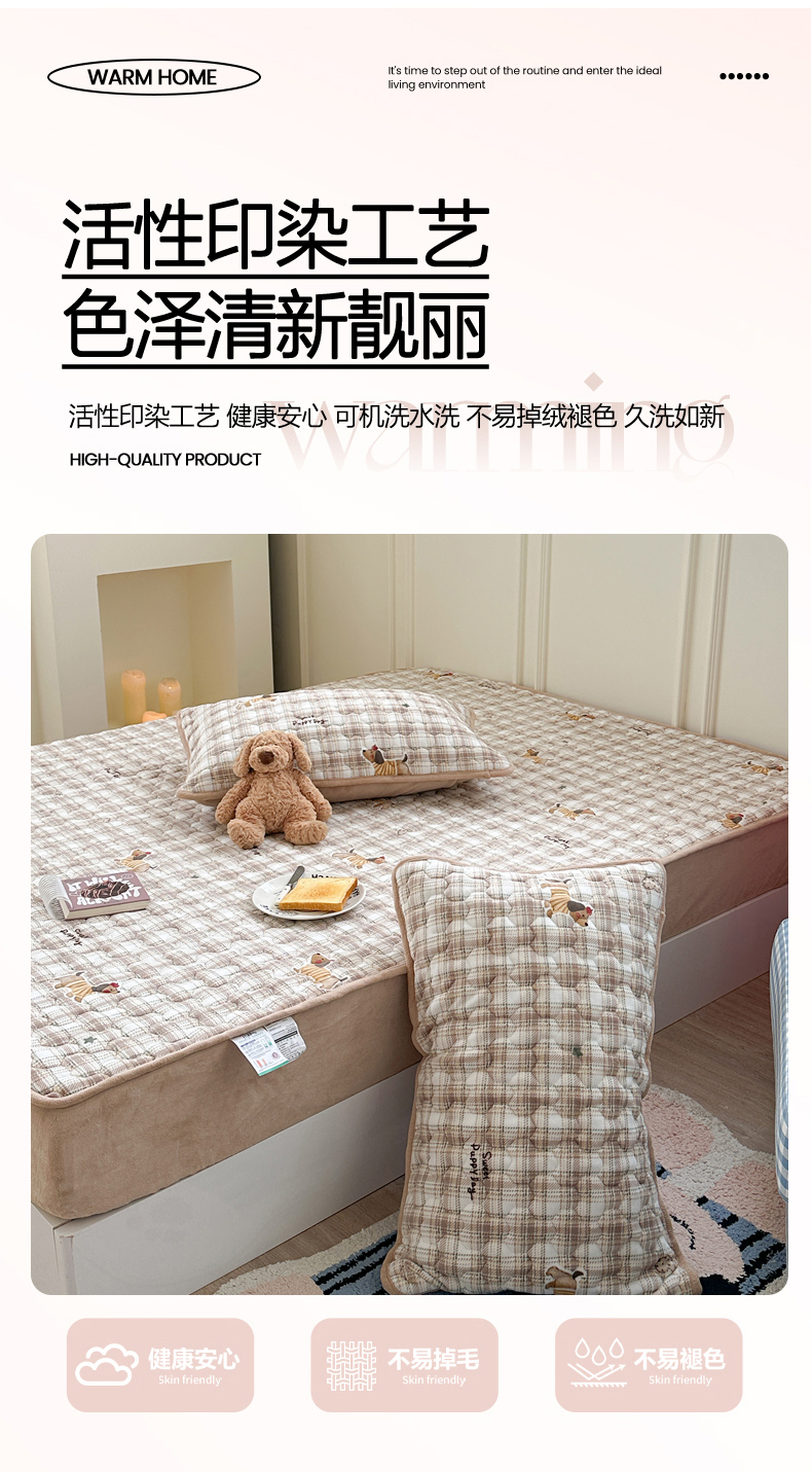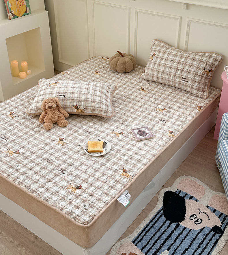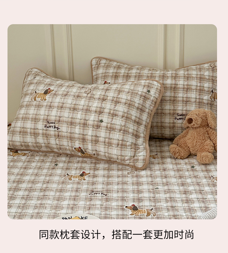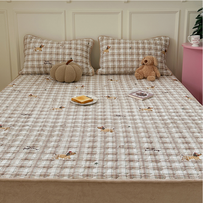 Sweet dreams甜梦 2025新款高克重牛奶绒印花夹棉床笠 苹果腊肠狗