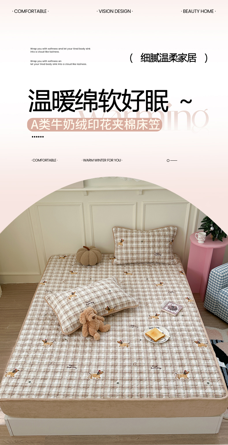 (总)Sweet dreams甜梦 2025新款高克重牛奶绒印花夹棉床笠圣诞款,冬日小猫粉,糖豆,雪人奇趣园
