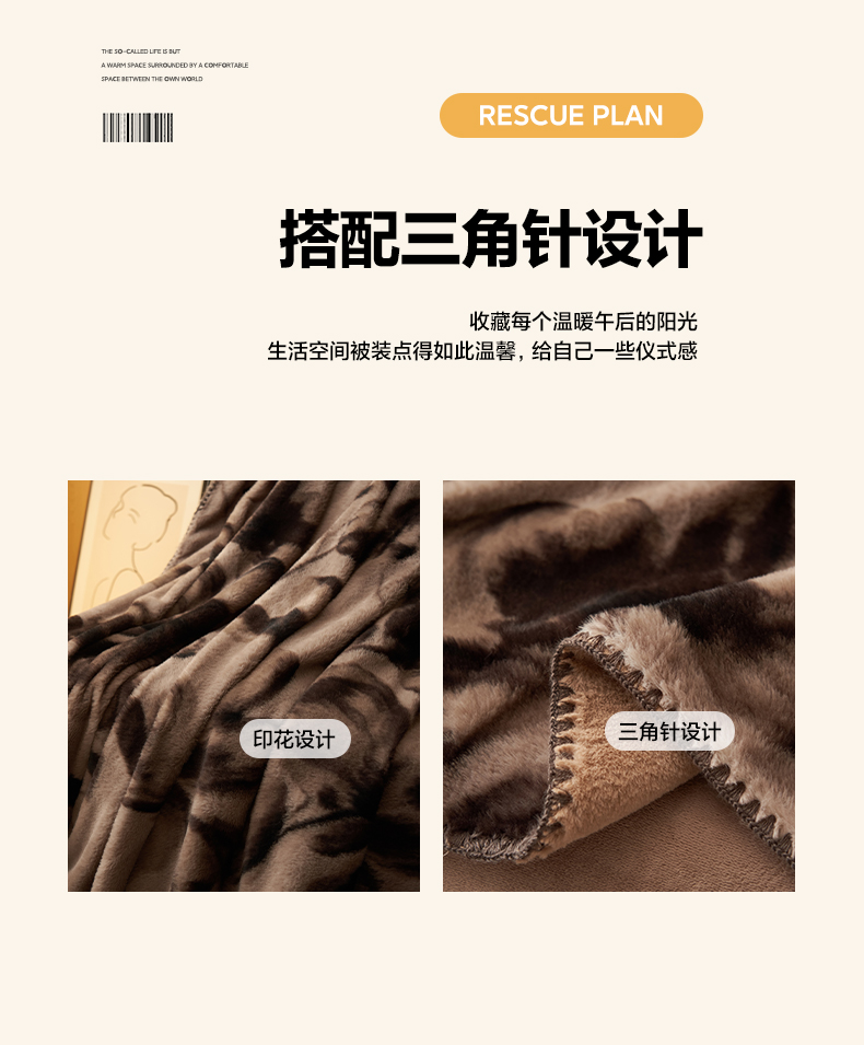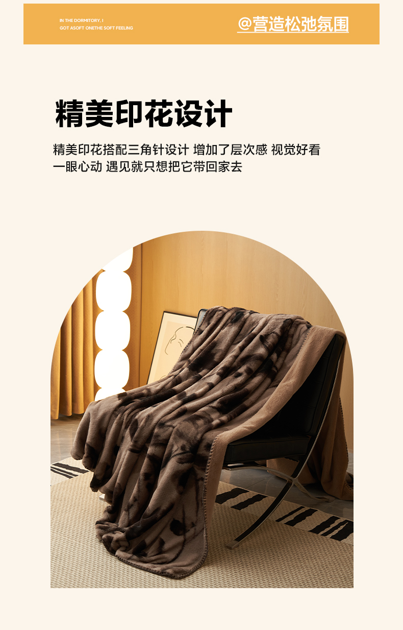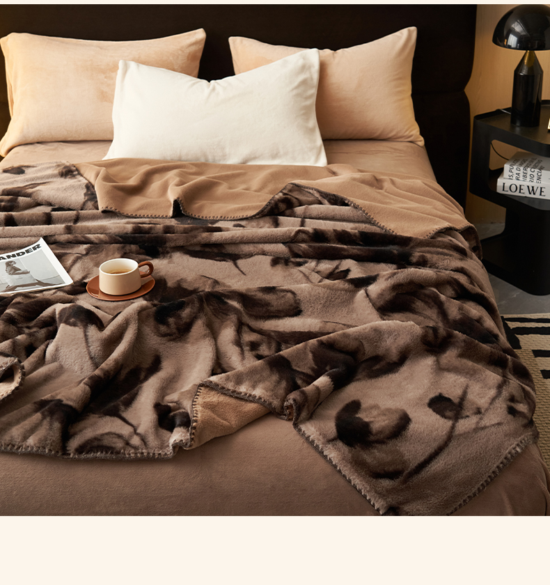 商品名称:晨曦家纺 2025新款兔毛绒海獭绒双层毛毯三角针复合毛毯 水墨画-深咖