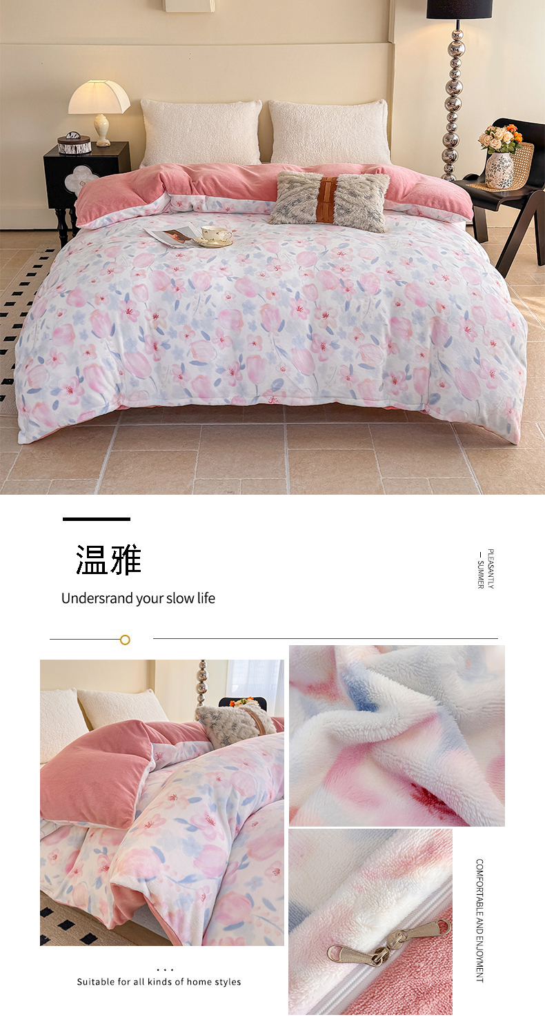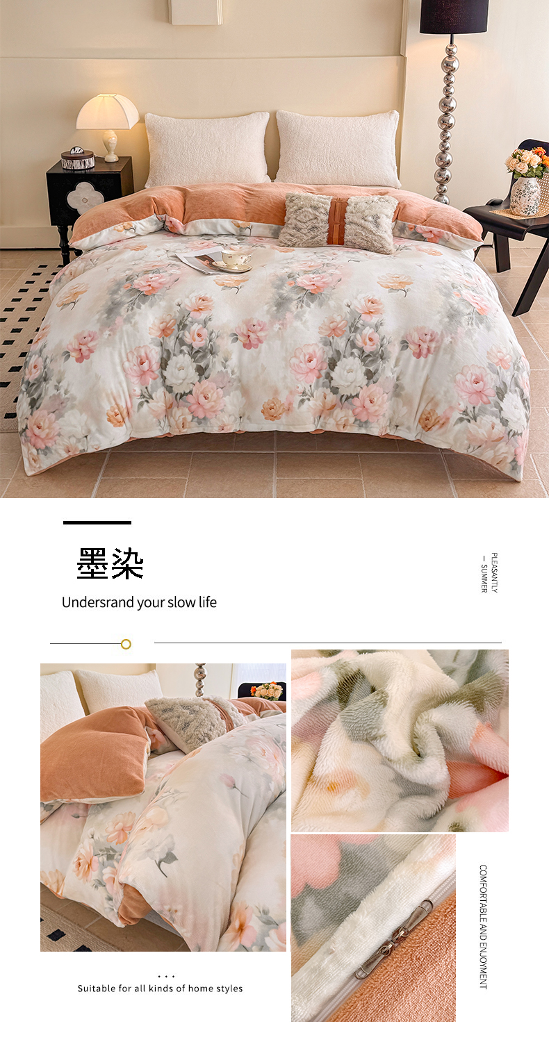 • 91家纺网 家纺一手货源 找家纺 金盛纺 2025新款高克重牛奶绒印花系列单被套(可定制) 流光