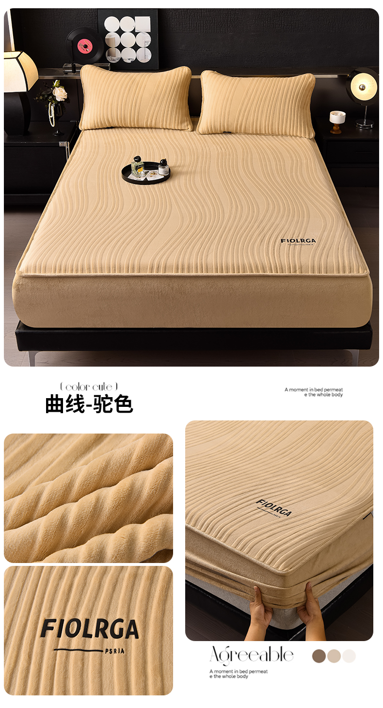 • 91家纺网 家纺一手货源 找家纺 金鹰 2025新款剪花复合加厚牛奶绒床笠席梦思保护套床垫套 曲线-浅灰