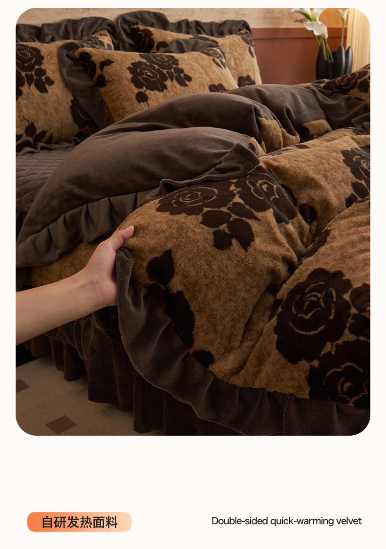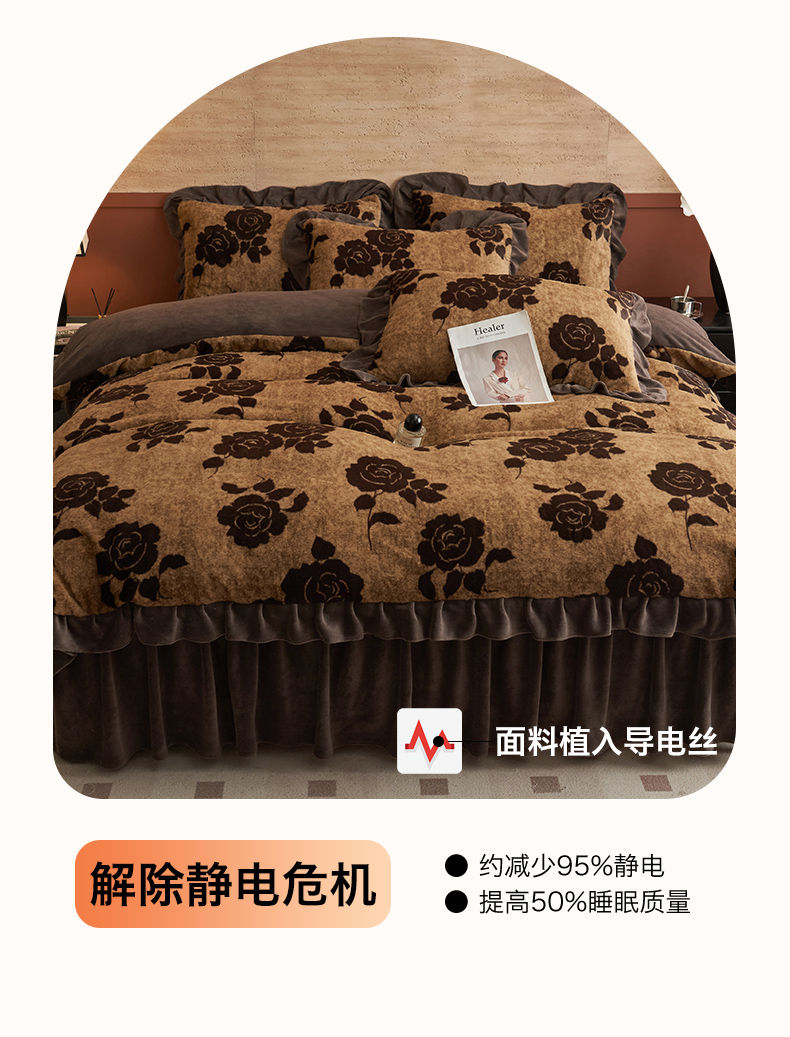 (总)金鹰 2025新款A类雕花牛奶绒烂花兔毛包边四件套,羽毛,波澜壮阔,繁花,蝴蝶梦,简爱,兰花,玫瑰物语,梦幻森林,清晨玫瑰,羽叶,仲夏晨歌