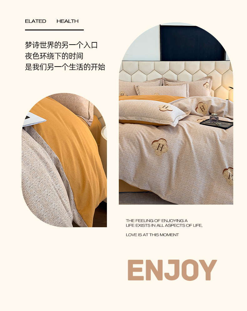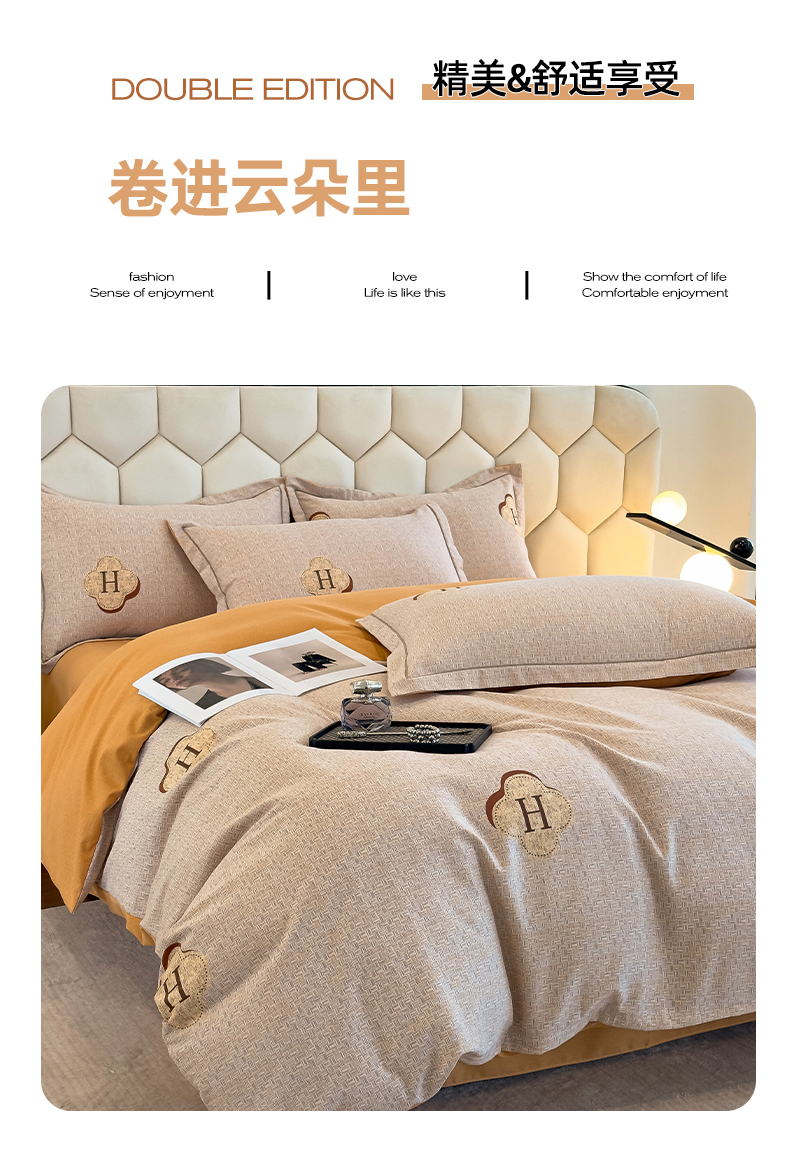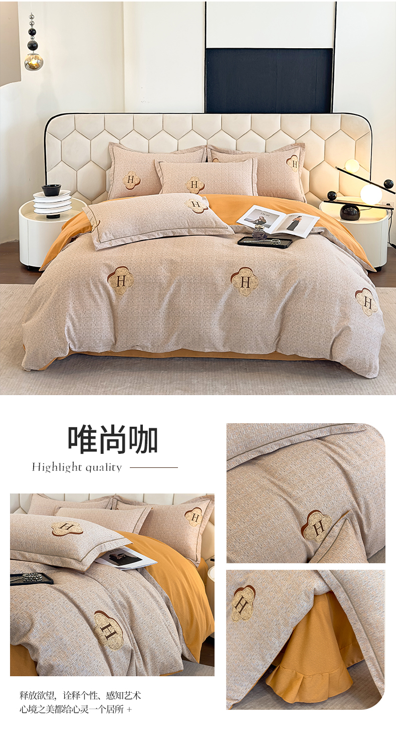 (总)雲归梦 2021新款全棉生态磨毛刺绣四件套,慕思-橙色,慕思-粉紫,慕思-灰,慕思-米黄,慕思-青绿,慕思-天蓝