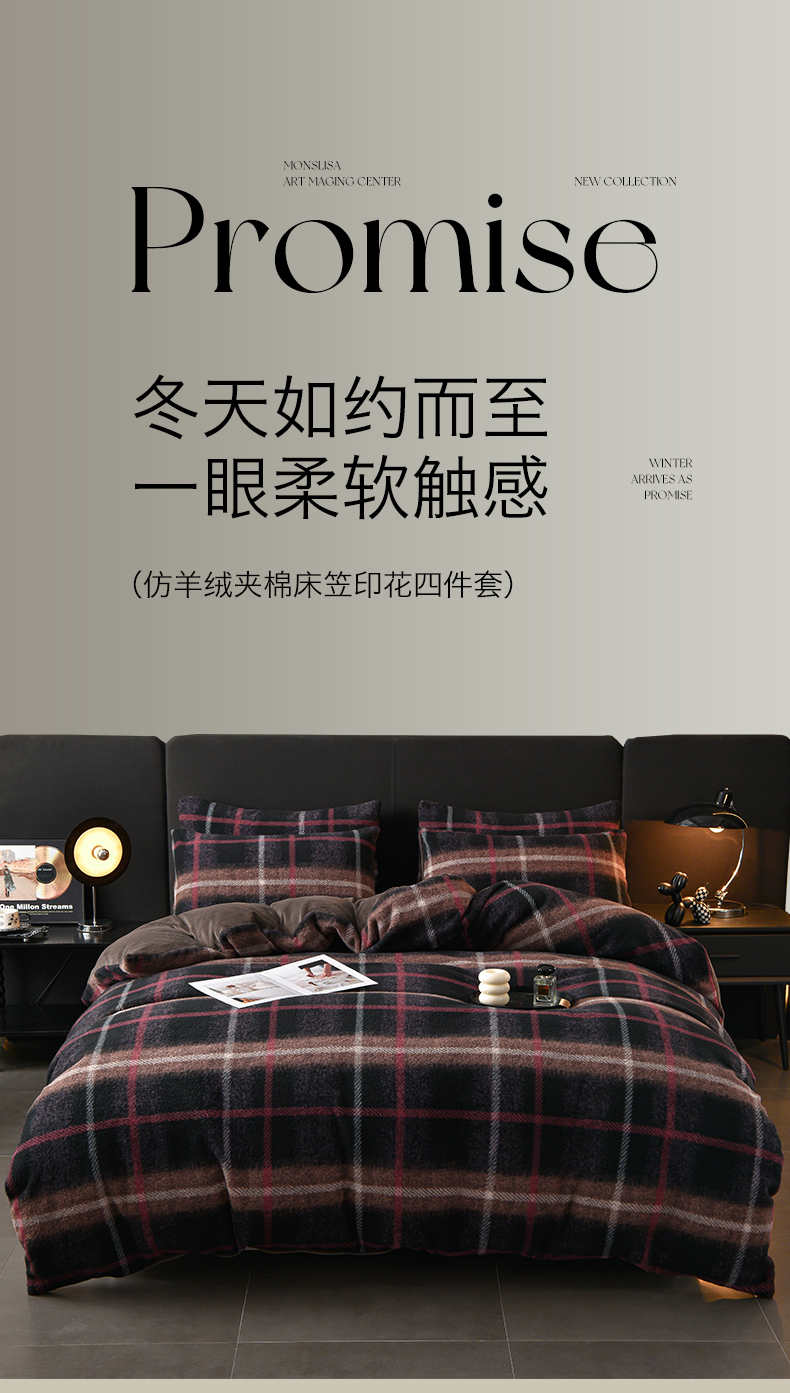 商品名称:(总)金鹰 2025新款仿羊绒夹棉印花床笠四件套加厚牛奶绒四件套