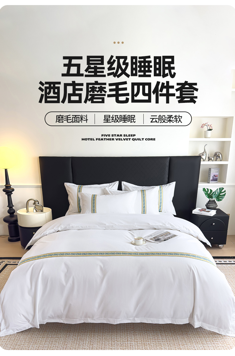 (总)梦庭帛美 2025新款酒店布草宾馆刺绣磨毛四件套
