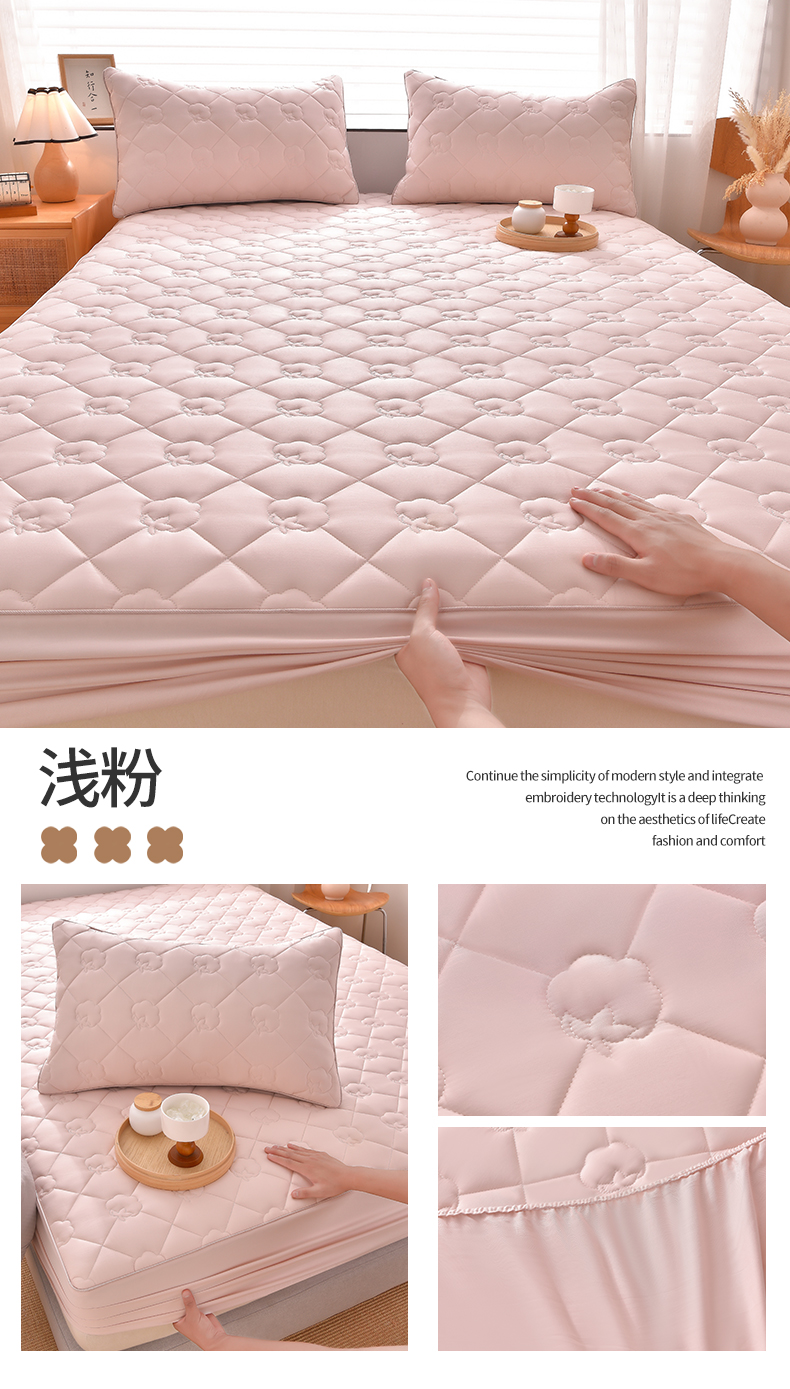 • 91家纺网 家纺一手货源 找家纺 金鹰 2025新款全棉50S夹棉抗菌防螨床笠加厚床笠席梦思保护套 浅粉