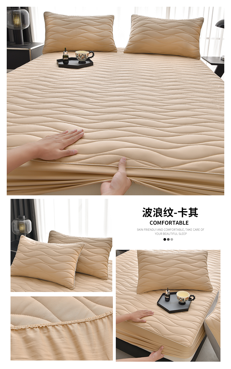 • 91家纺网 家纺一手货源 找家纺 金鹰 2025新款全棉50S抗菌防螨夹棉防水床笠席梦思保护套床垫套 波浪纹-浅兰