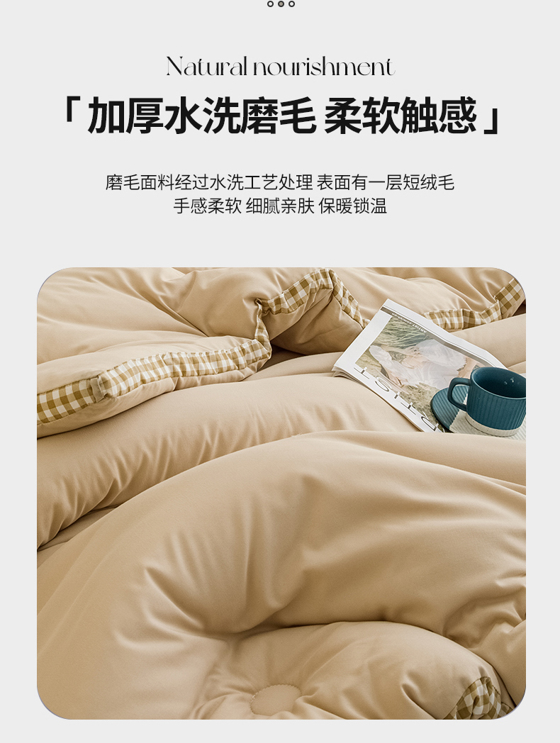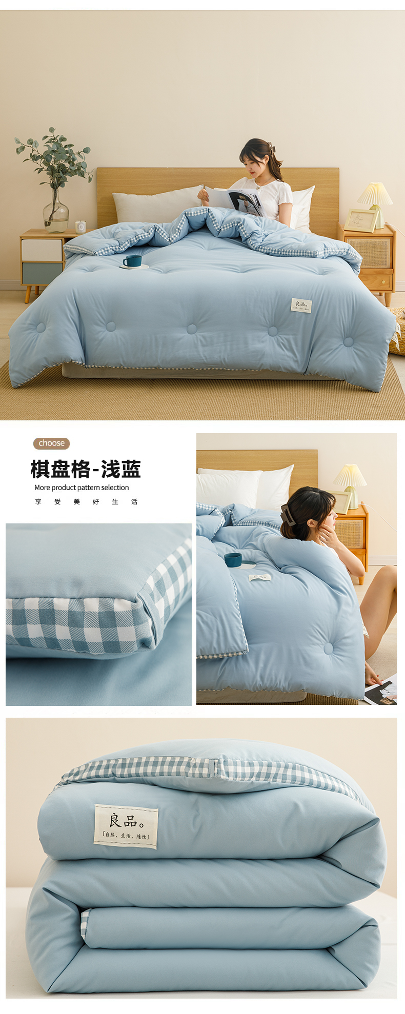 • 91家纺网 家纺一手货源 找家纺 小叮当家纺仓储工厂店 2025新款无印风水洗磨毛立体大豆纤维被被子被芯 棋盘格-牛仔蓝【A类母婴级 大豆纤维】