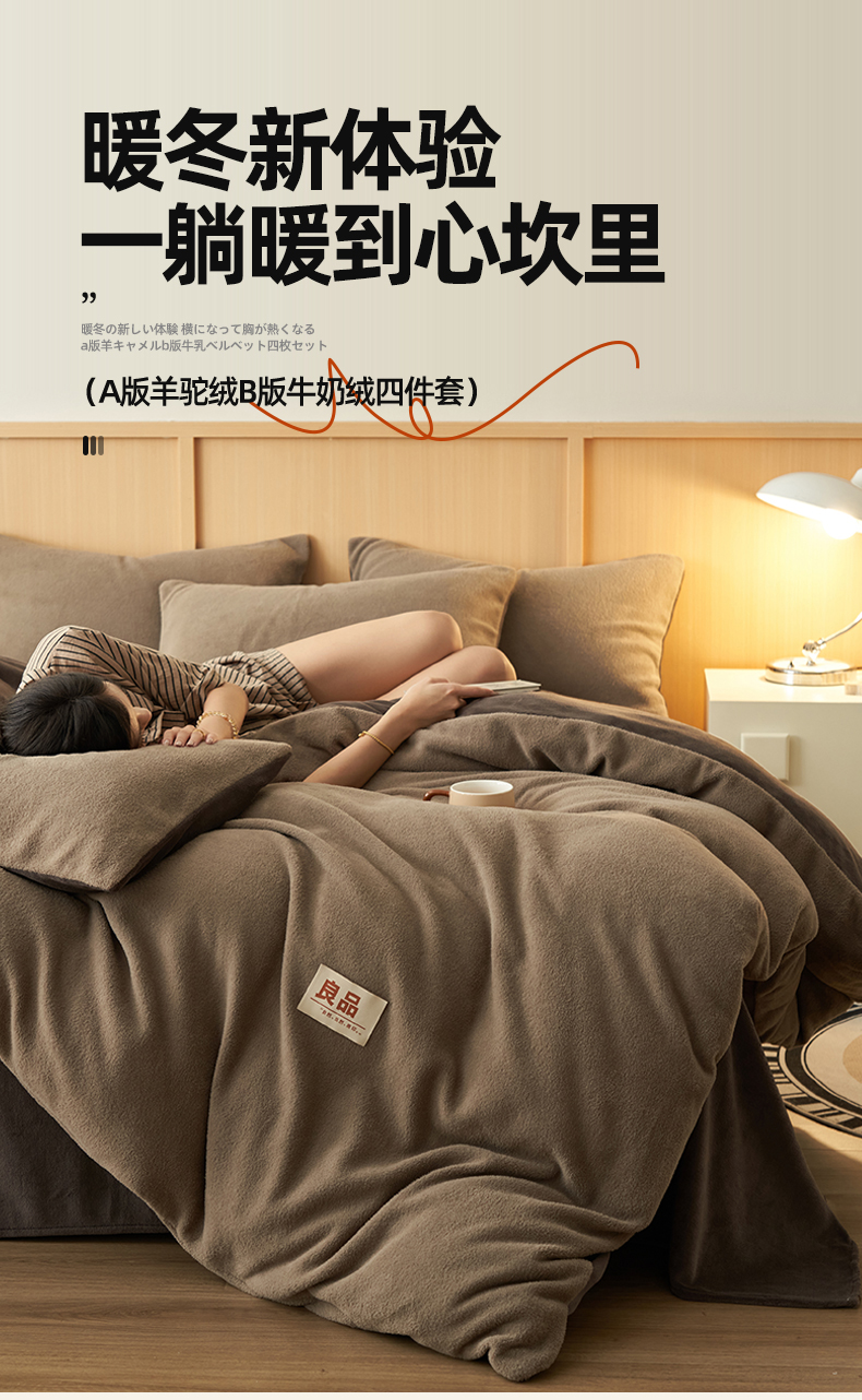 商品名称:金鹰 2025新款羊驼绒牛奶绒四件套保暖套件 羊驼绒-深咖