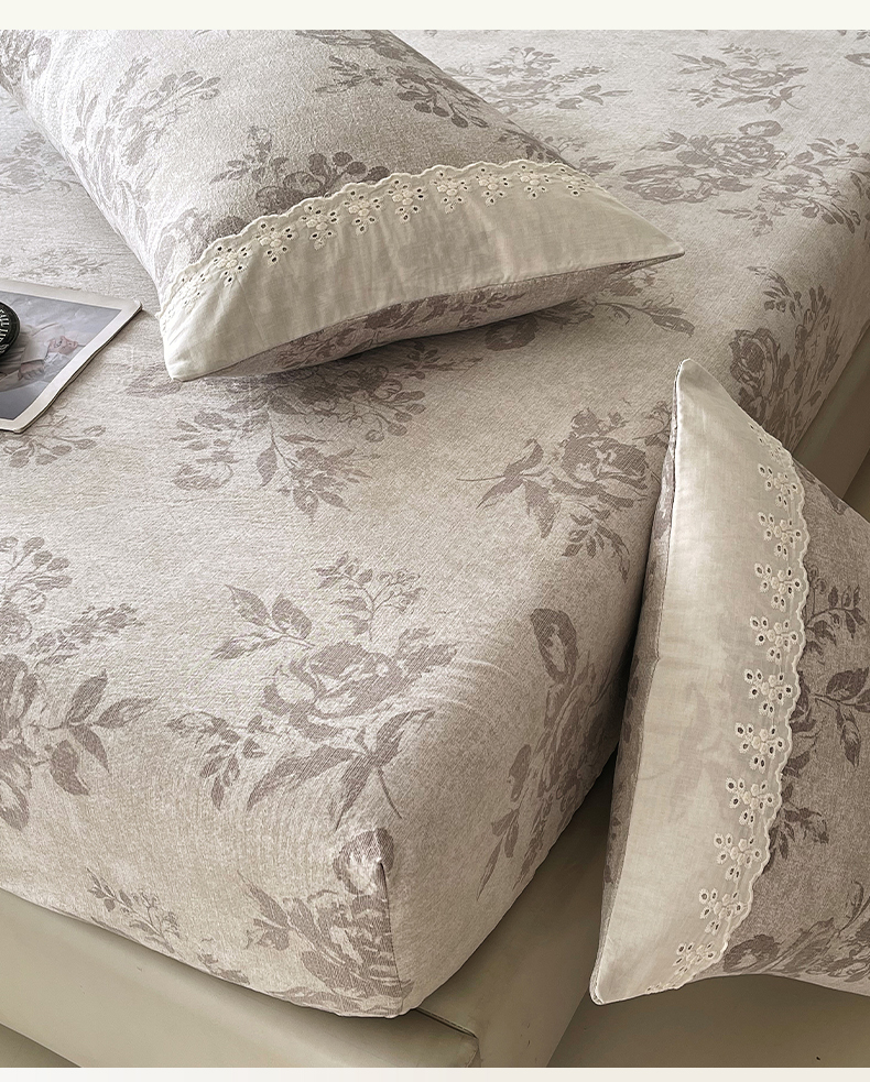 丝芙妮家居(原乐视家纺) 2025新款全棉纯棉蕾丝花边原麻单品床笠单件床笠 森蔓