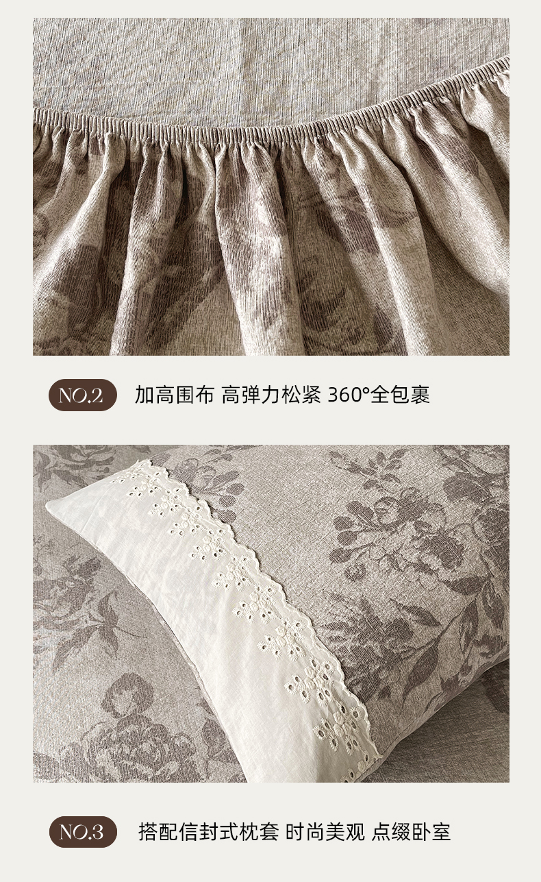 • 91家纺网 家纺一手货源 找家纺 丝芙妮家居(原乐视家纺) 2025新款全棉纯棉蕾丝花边原麻单品床笠单件床笠 森蔓