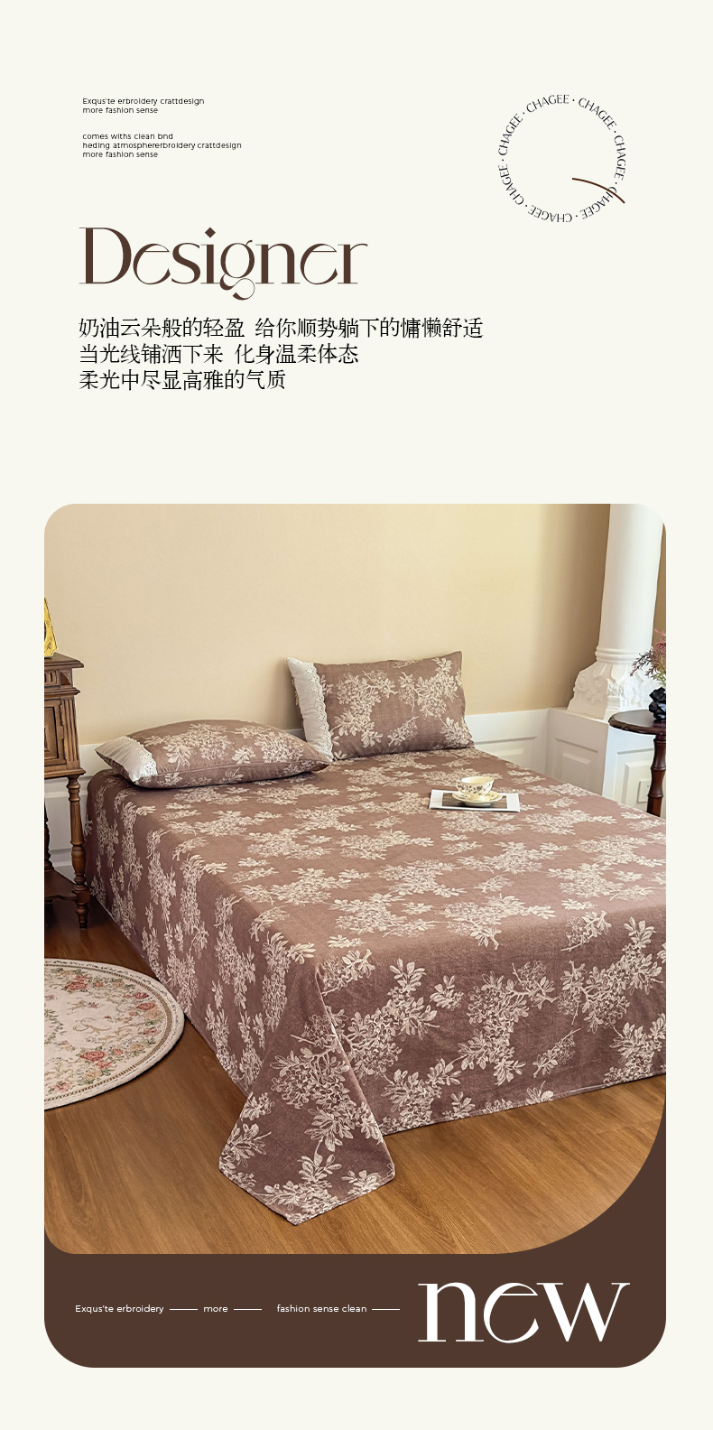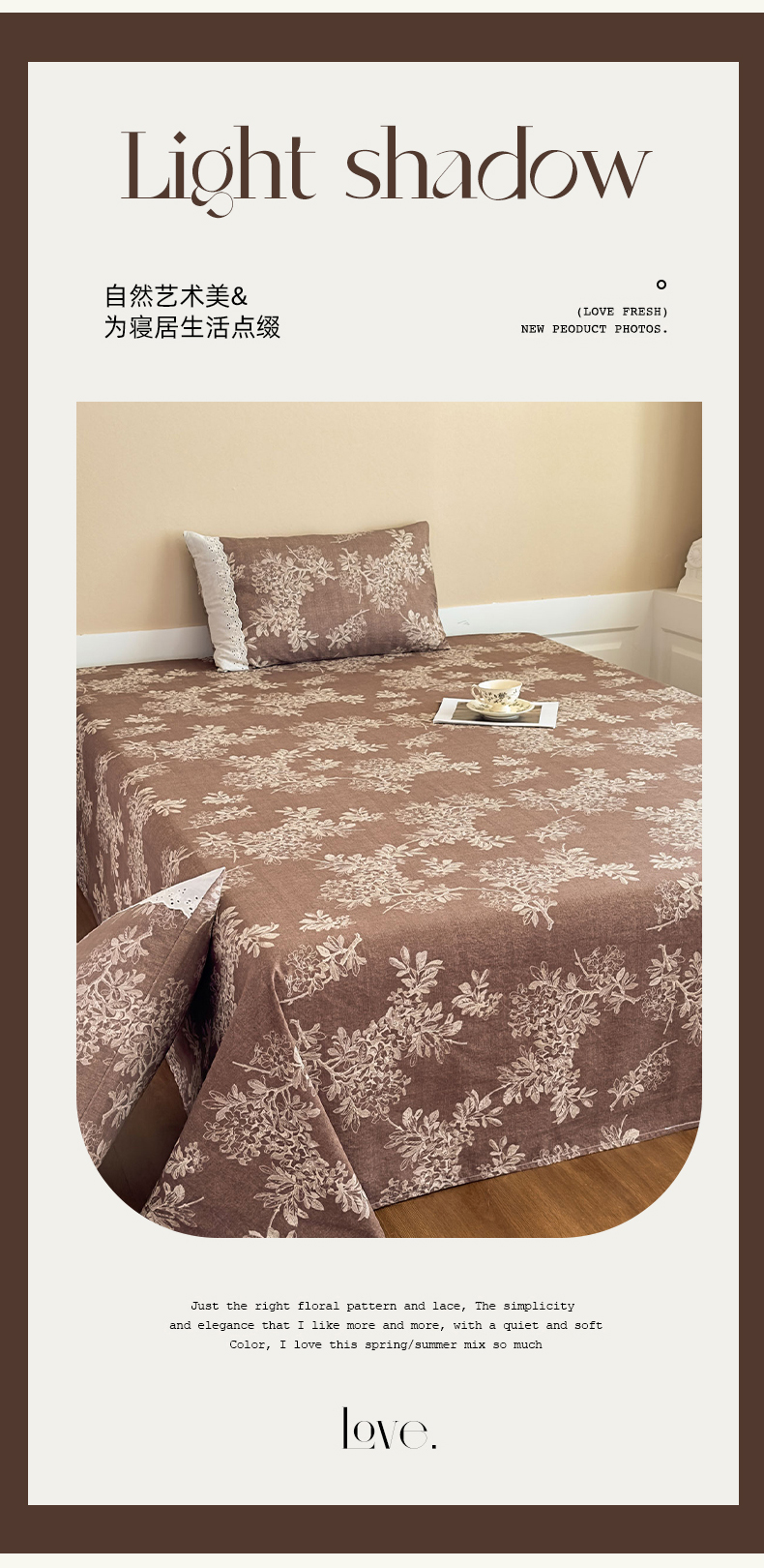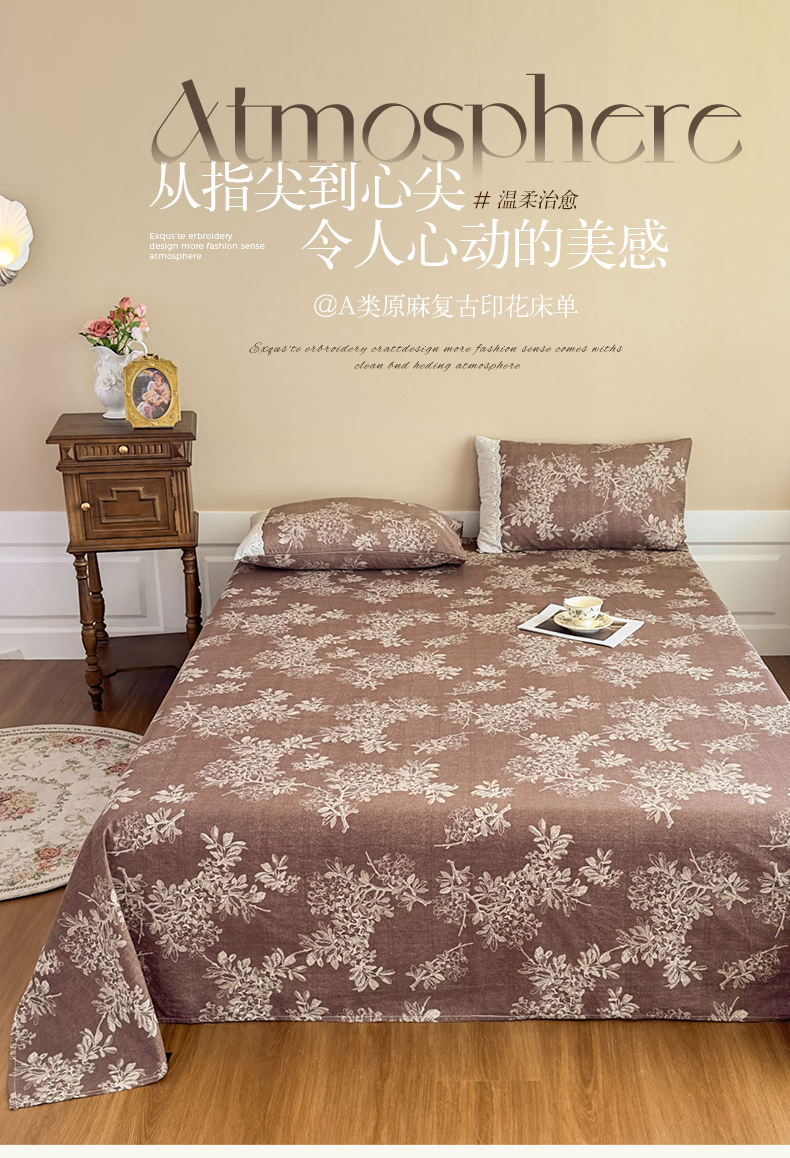 商品名称:丝芙妮家居(原乐视家纺) 2025新款全棉纯棉蕾丝花边原麻单件床单单品床单 浅影摇