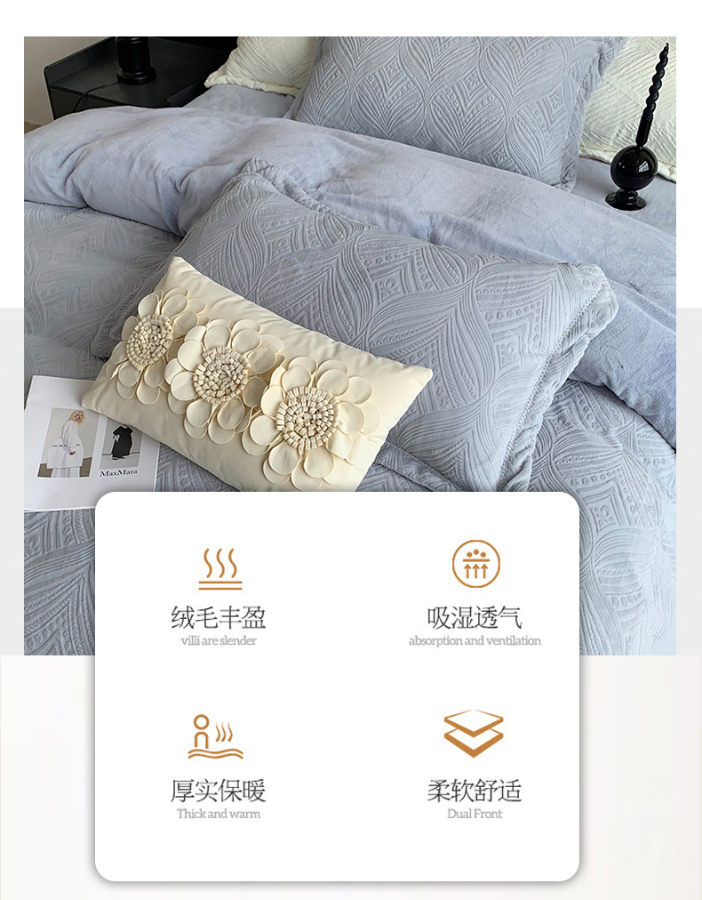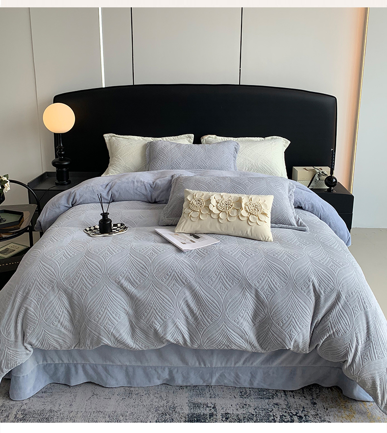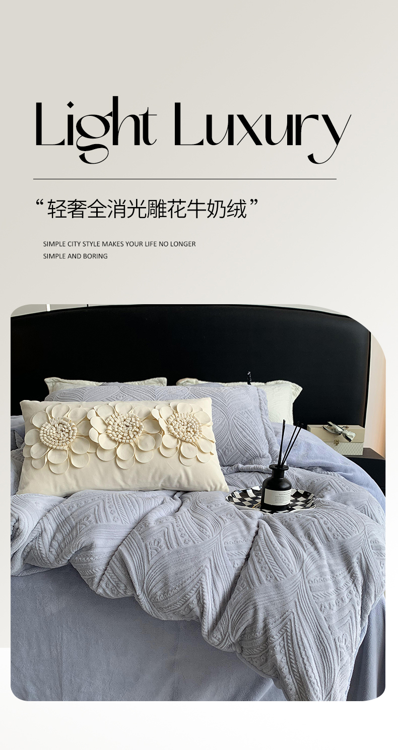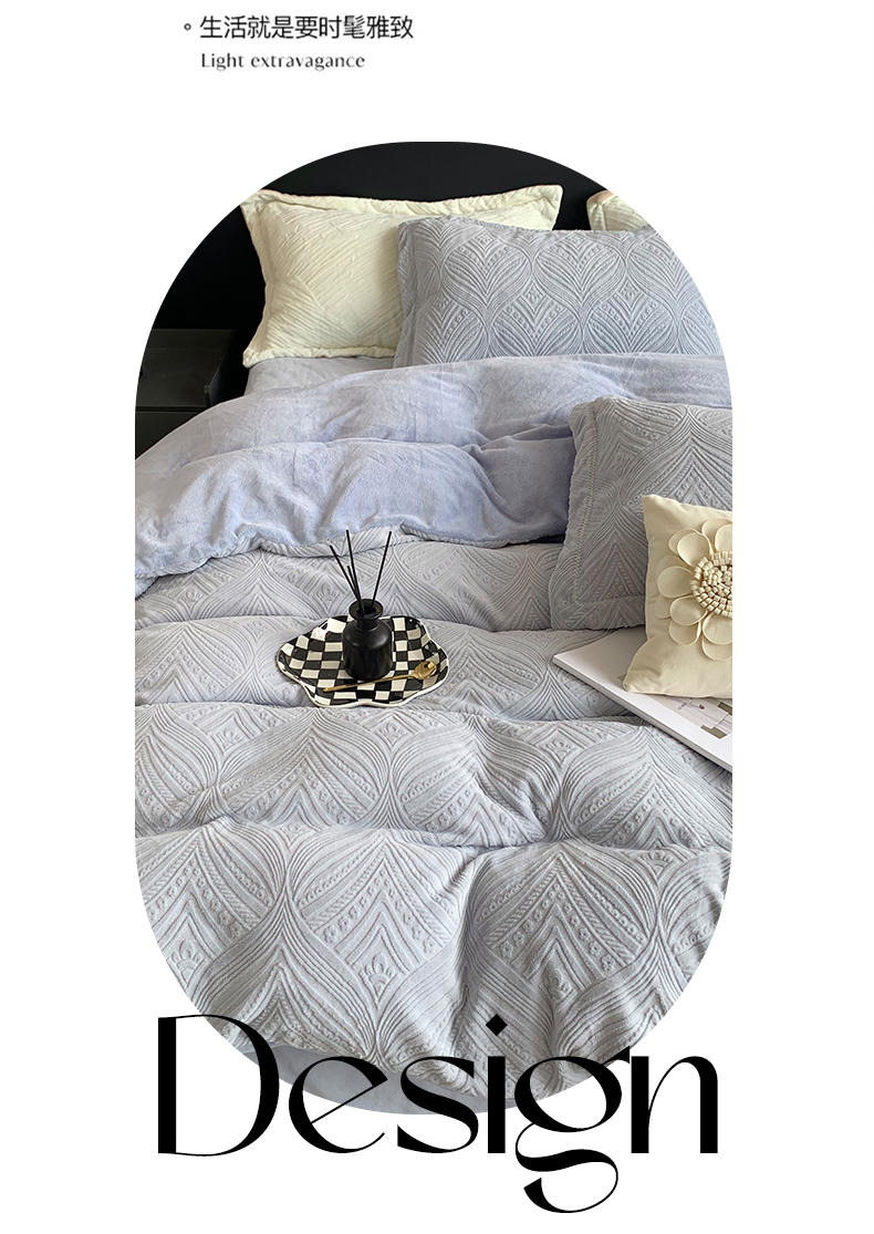 奈萝家纺 2025新款雕花绒高克重牛奶绒四件套-流年系列 流年木薯灰