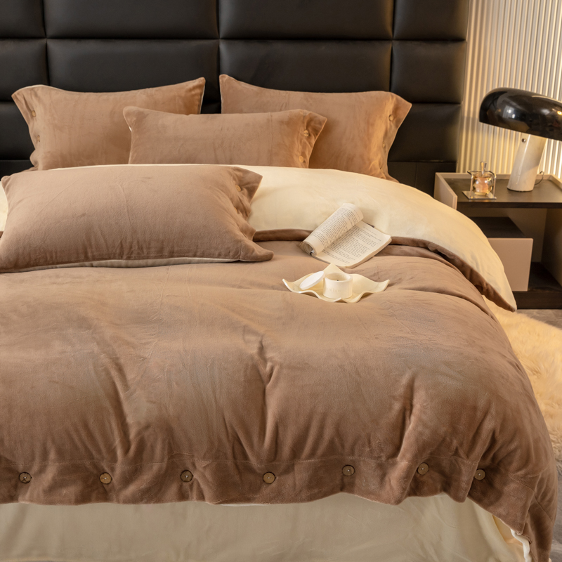 当前位置: 91家纺网 > 商品网购 > 床品套件 > 四件套 > 牛奶绒四件套 > ONE TWO ONE 121 2025新款高克重牛奶绒纽扣款纽扣大宽边系列四件套风格三 纽扣大宽边-焦糖