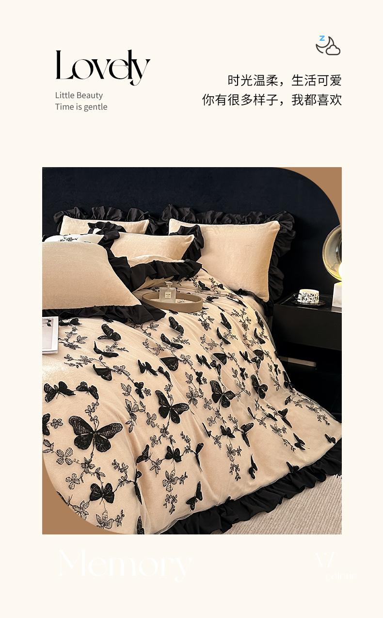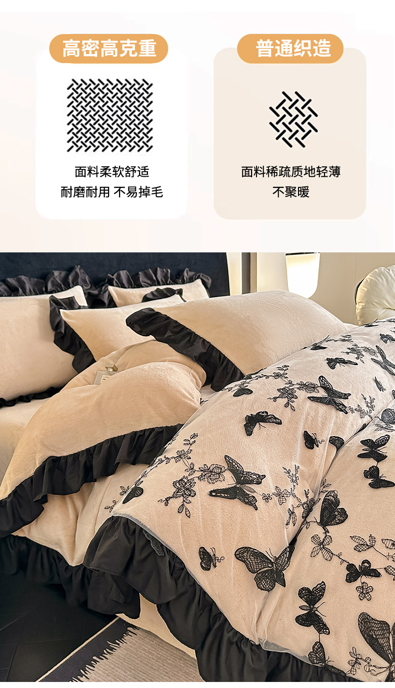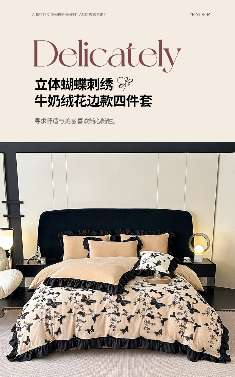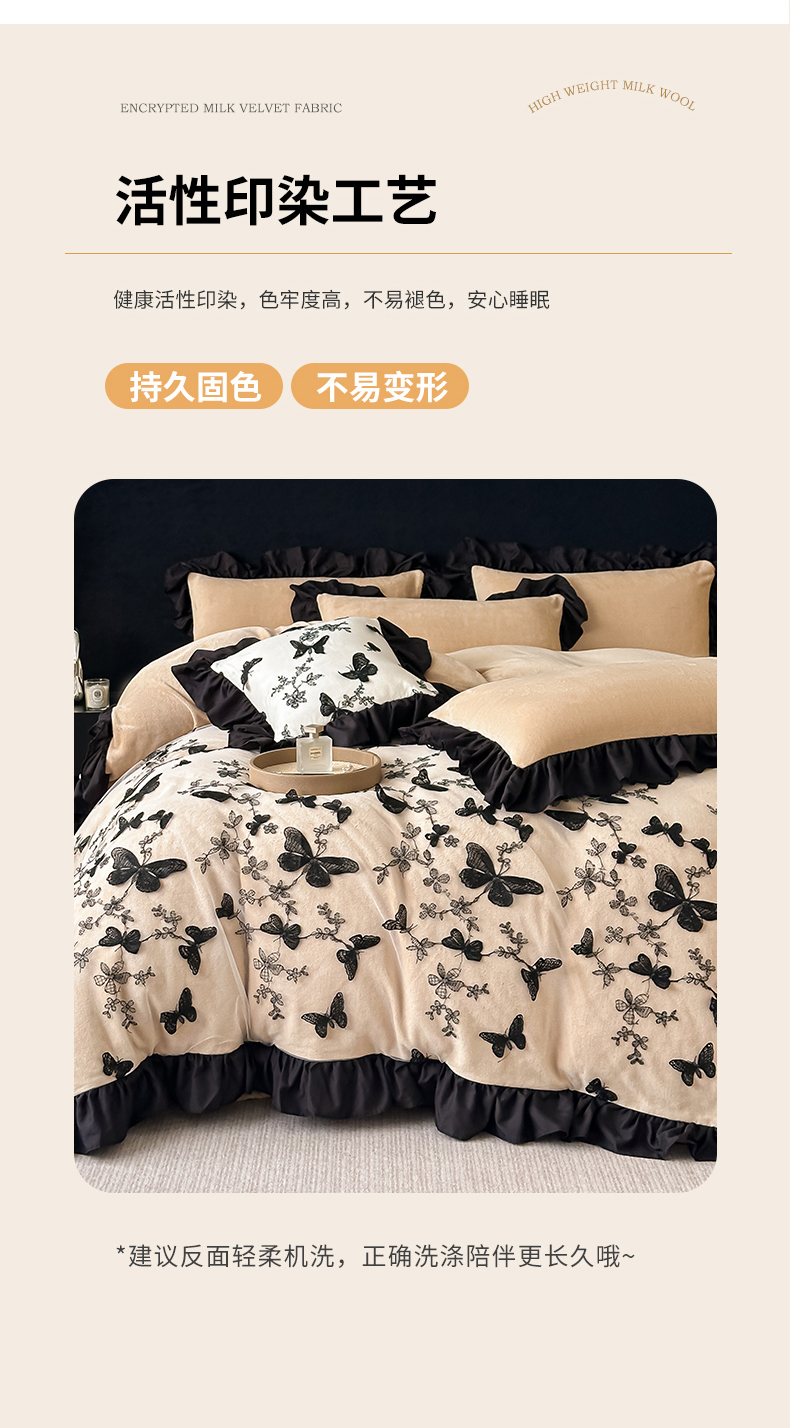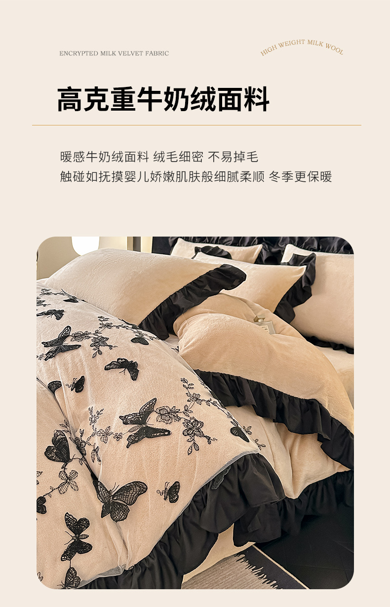 当前位置: 91家纺网 > 商品网购 > 床品套件 > 四件套 > 牛奶绒四件套 > 凯美家居 2025新款牛奶绒立体蕾丝刺绣四件套-蝴蝶翩翩 蝴蝶翩翩-卡其