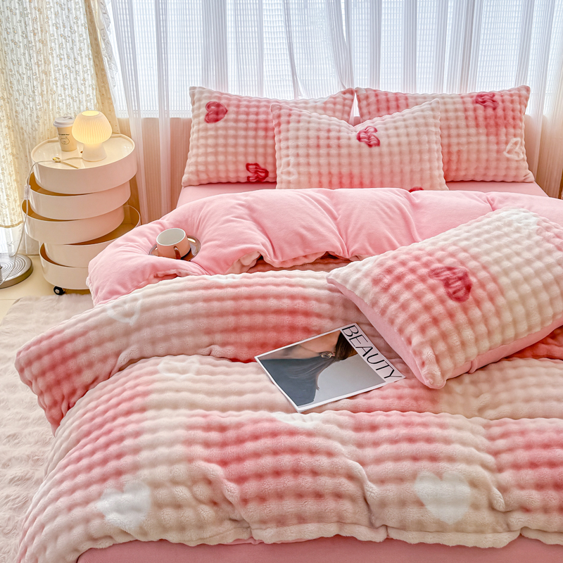 (总)(买家秀 爆款不断货)A类母婴级高克重獭兔绒四件套牛奶绒四件套牛奶绒四件套纯色韩版荷叶边兔毛绒四件套,泡泡粉玉,泡泡-滨海绿,泡泡-摩登卡,泡泡高级灰,泡泡卡其,泡泡奶白