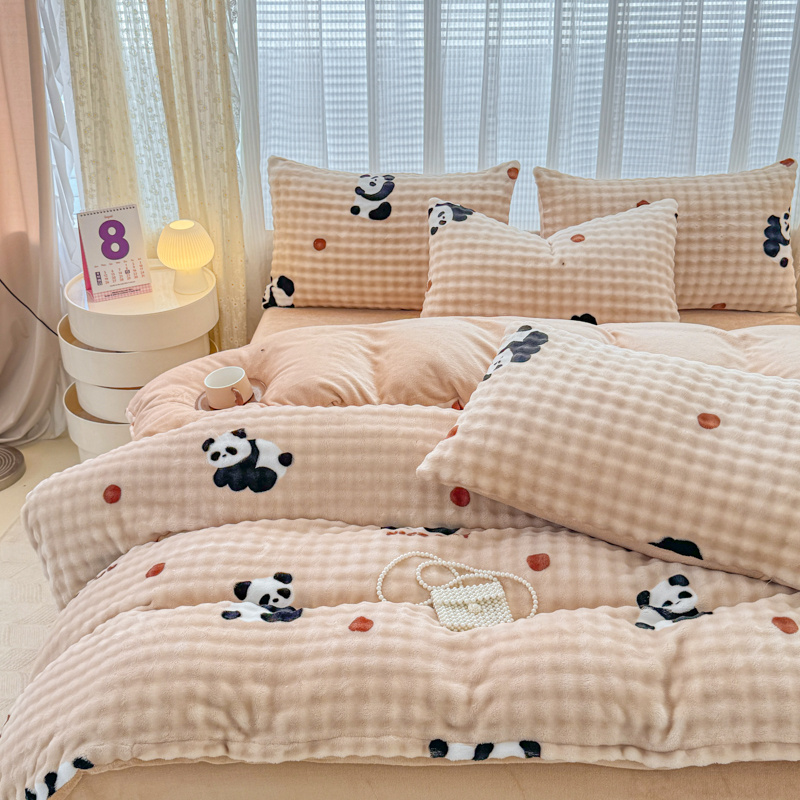 (总)(买家秀 热款花型 不断货)母婴级A类ins风水洗棉四件套水洗棉毛巾绣四件套水洗棉床笠四件套提花绣花,幸运小狗,开心熊猫,小红帽,小兔音乐会