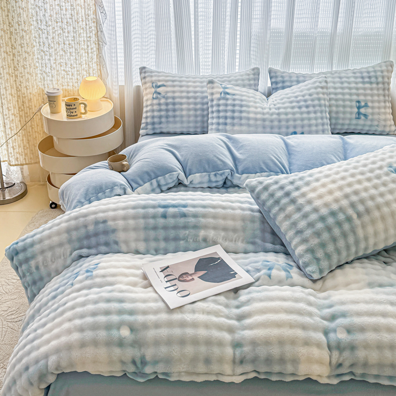 (总)(买家秀 爆款不断货)A类母婴级高克重獭兔绒四件套牛奶绒四件套牛奶绒四件套纯色韩版荷叶边兔毛绒四件套,泡泡粉玉,泡泡-滨海绿,泡泡-摩登卡,泡泡高级灰,泡泡卡其,泡泡奶白