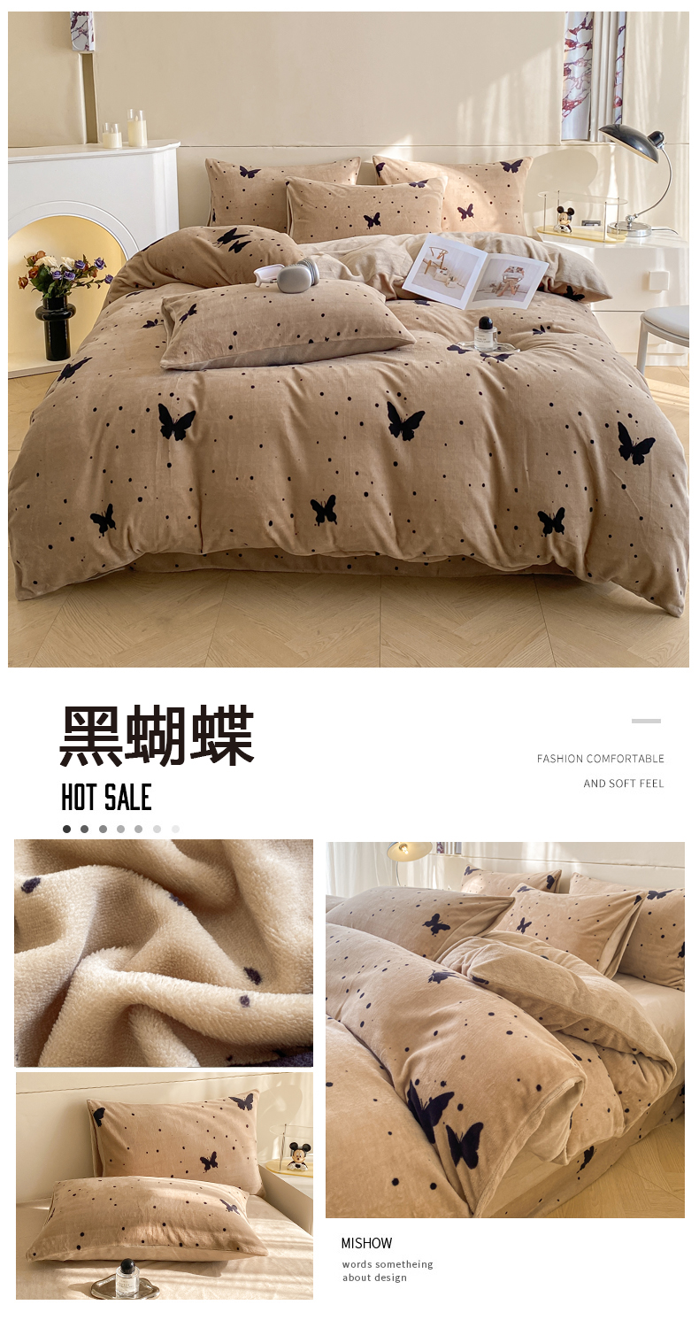 (总)斯卡诺家纺 2025新款双面牛奶绒跑量款四件套,波点小熊,蝶舞,繁华咖,荷花,花朵灰,时尚迷你,仙踪古驰,动物园,印象,蝴蝶结咖,经典豹纹